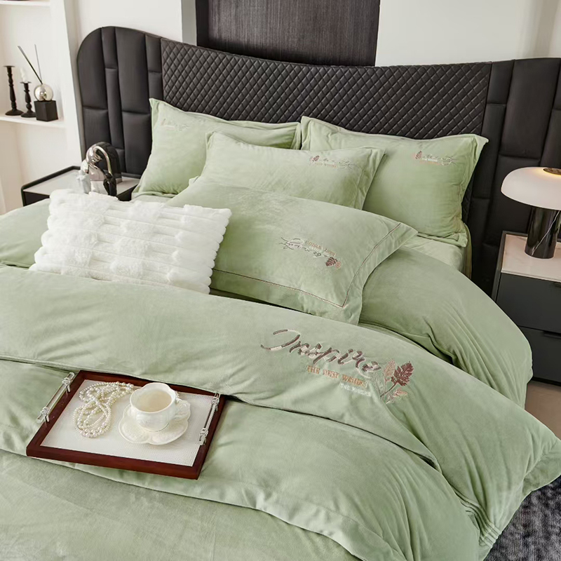 悠梦嘉居 YJ-15561豆蔻年华水晶绒四件套4500克 200*230CM 豆蔻年华灰绿、新疆、西藏、青海、宁夏、甘肃运费另算)