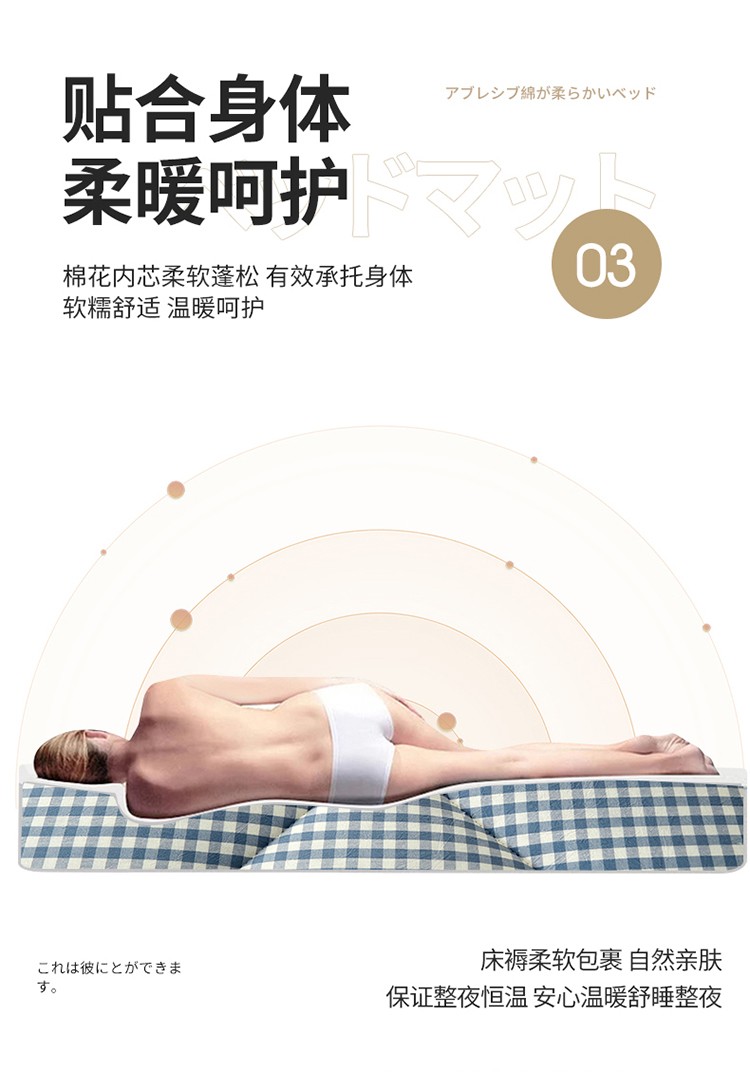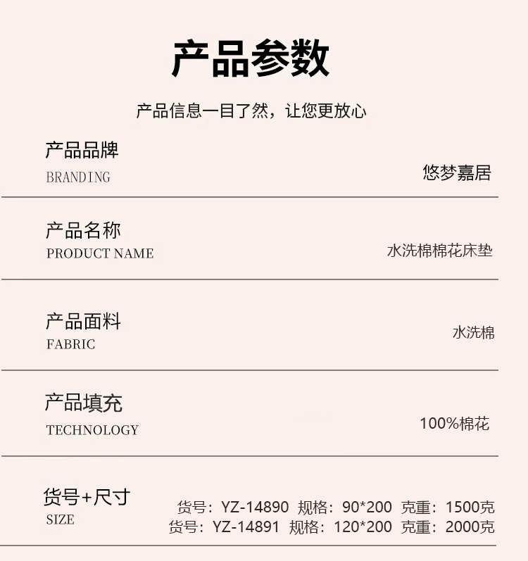 商品名称:悠梦嘉居YZ-14890水洗棉棉花床垫,120*200(内蒙、新疆、西藏、青海、宁夏、甘肃运费另算)