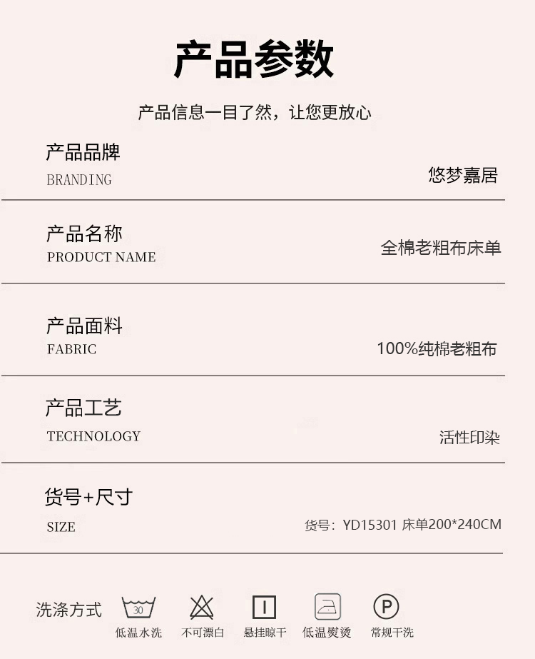 商品名称:悠梦嘉居YD15301全棉老粗布床单200*235CM (内蒙、新疆、西藏、青海、宁夏、甘肃运费另算)