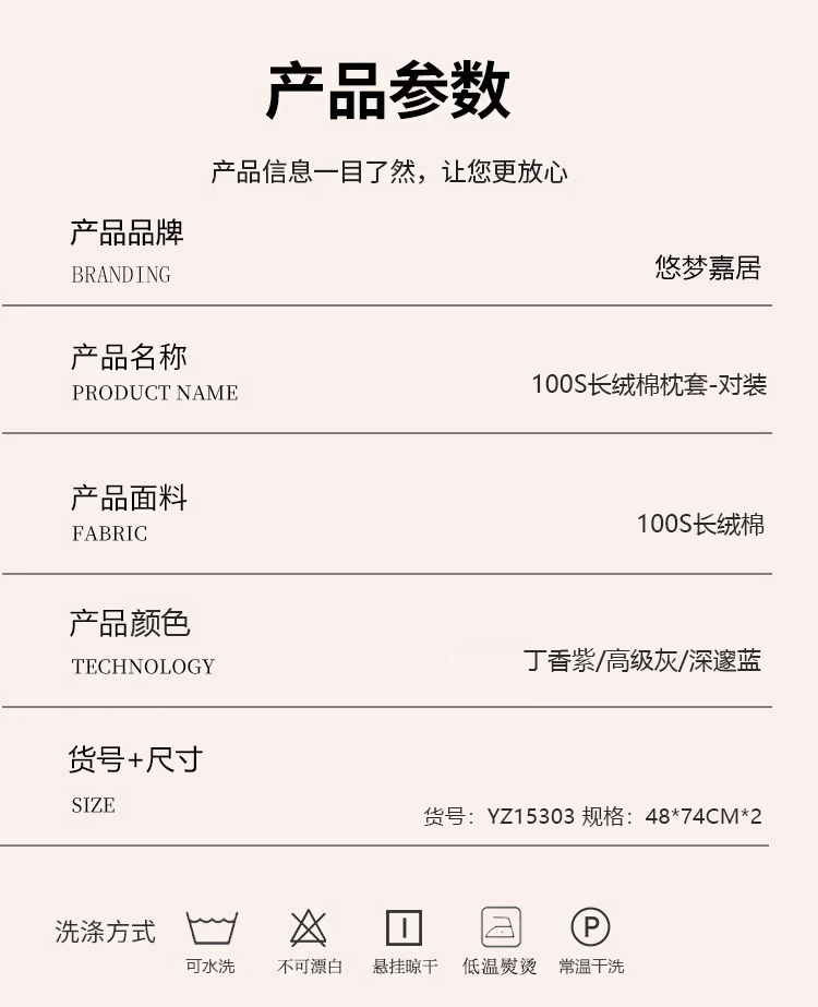 商品名称:悠梦嘉居YZ15303 100S长绒棉枕套-对装 丁香粉(内蒙、新疆、西藏、青海、宁夏、甘肃运费另算)