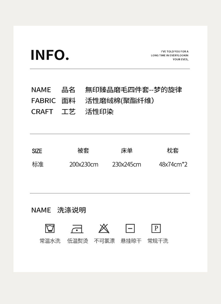 商品名称:無印臻品磨毛四件套梦的旋律MJ-TJ25-02被套200*230cm6978032330591