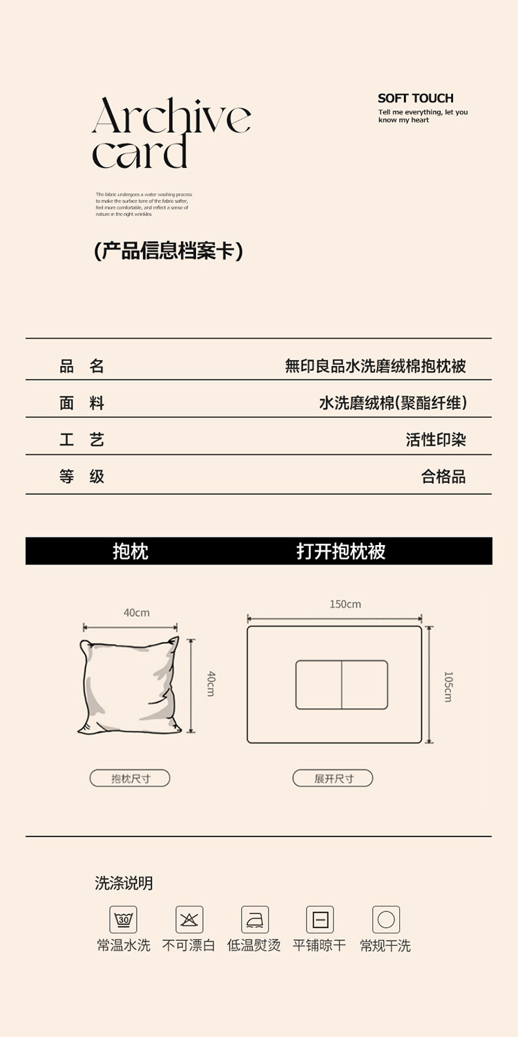 商品名称:無印良品水洗磨绒棉抱枕被MJ-XJ25-02折叠40*40cm展开105*150cm6978032331123