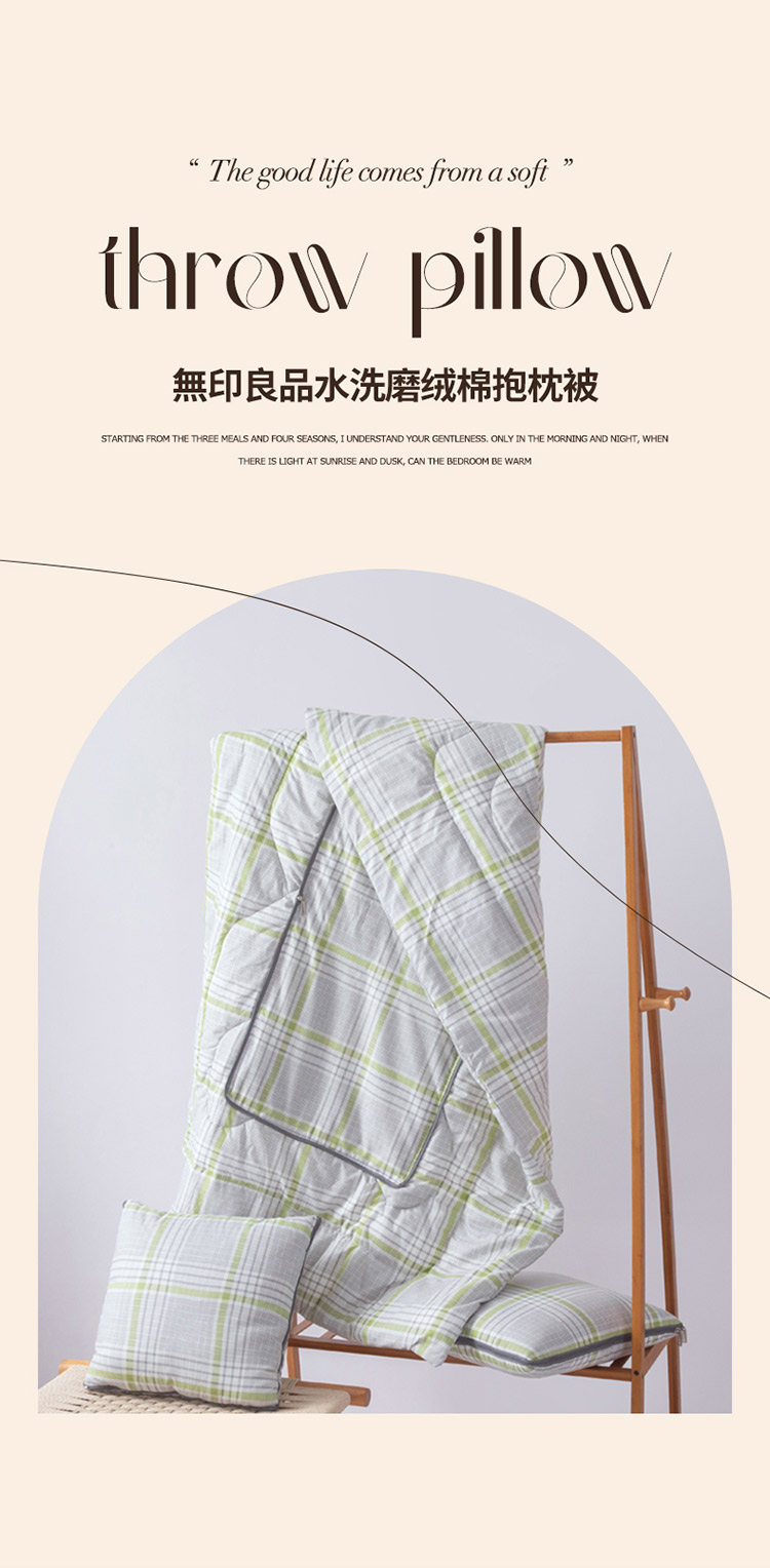 無印良品水洗磨绒棉抱枕被MJ-XJ25-02折叠40*40cm展开105*150cm6978032331123