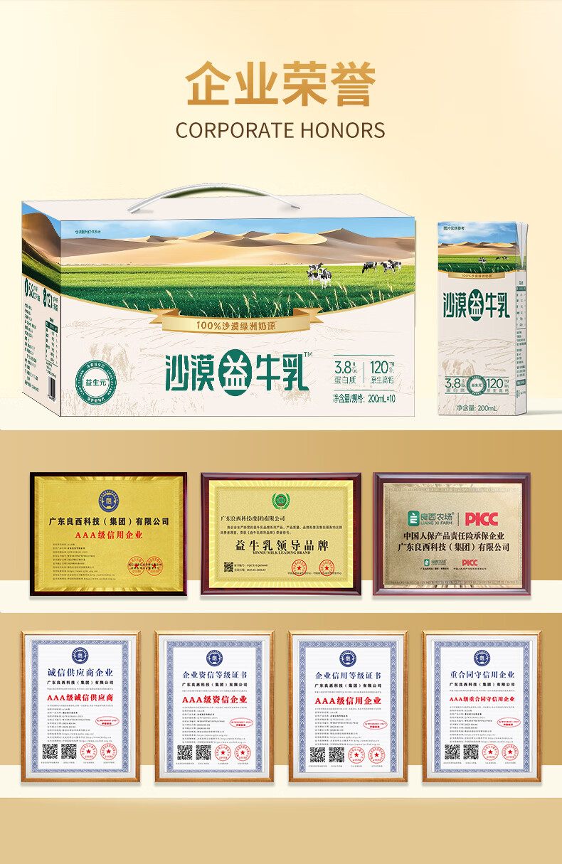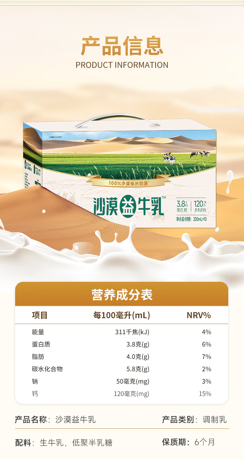 商品名称:良西农场沙漠益牛乳200ML*10盒