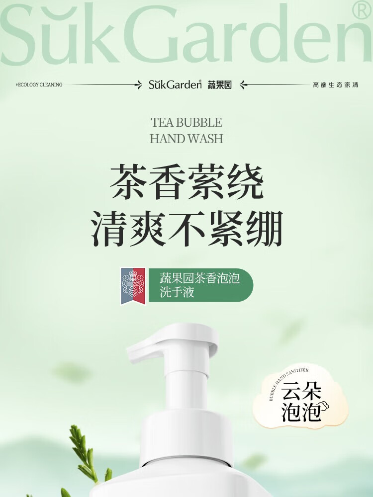 商品名称:SukGarden蔬果园茶香泡泡洗手液500mlSGY0149码6970470335664