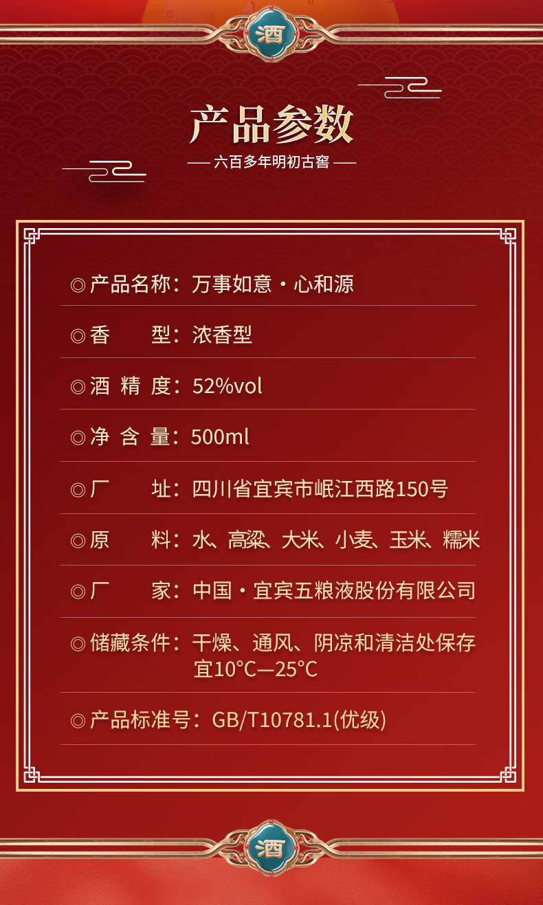 商品名称:五粮液 52度 万事如意 心和源 浓香型白酒(整箱)