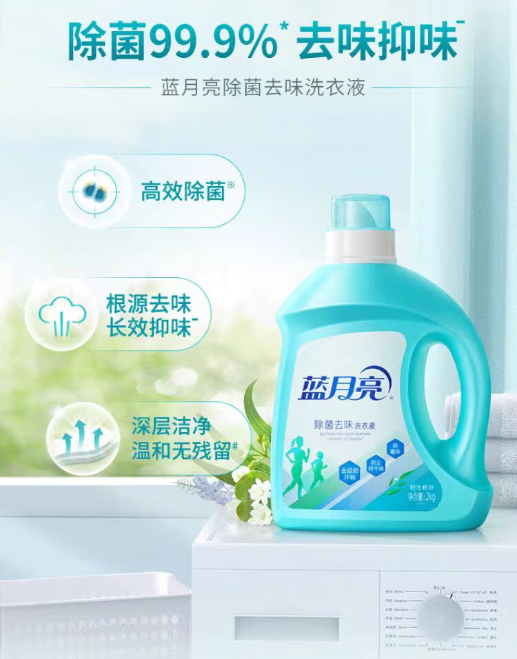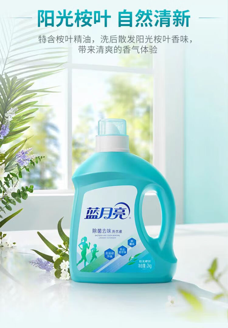 商品名称:蓝月亮除菌去味洗衣液瓶阳光桉叶2kg10001805码6902022146312