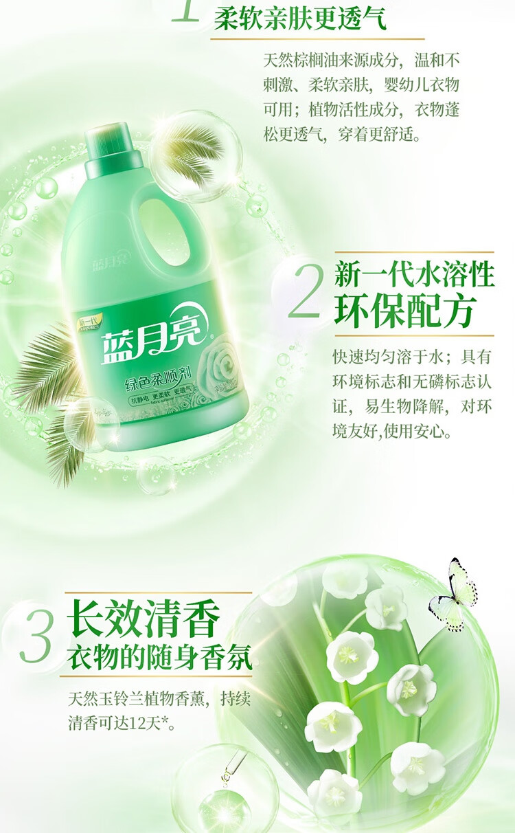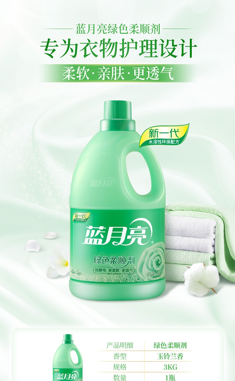 商品名称:蓝月亮绿色柔顺剂玉玲兰3kg10000032码6902022133220