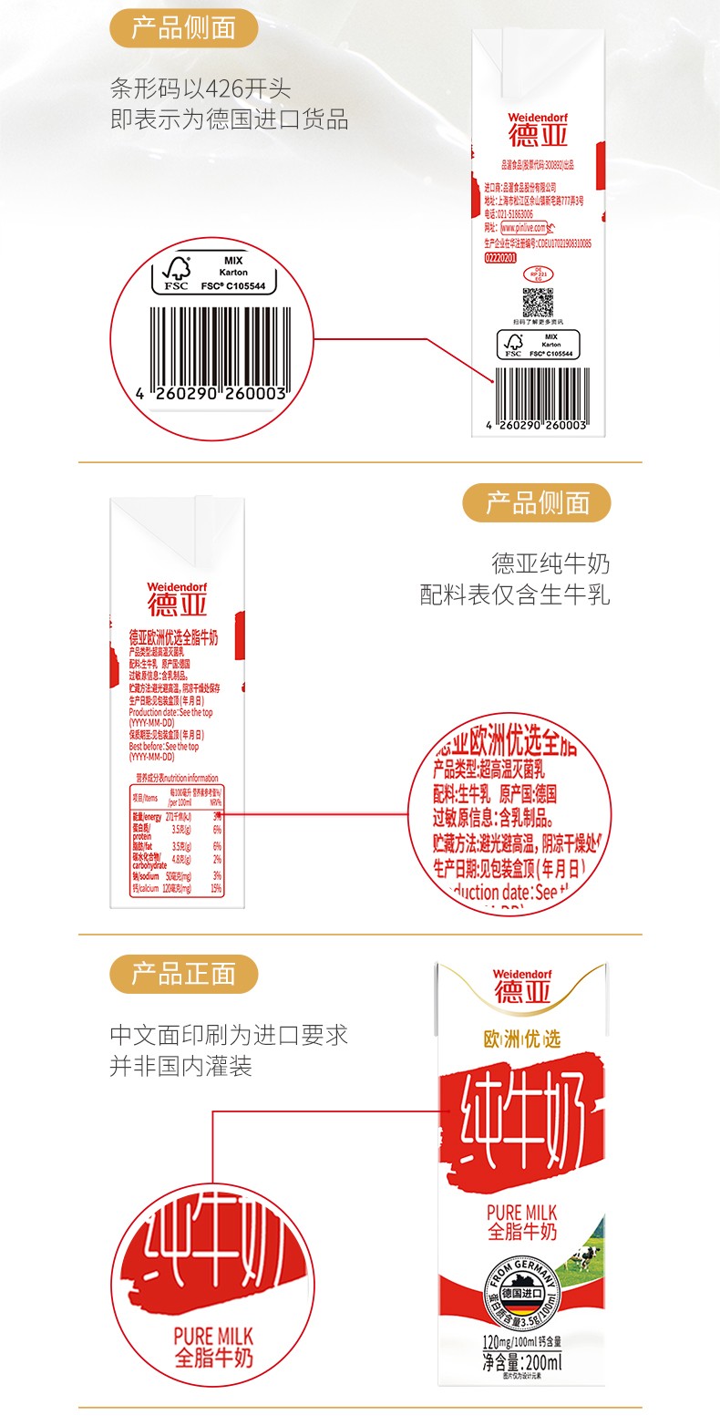 德亚欧洲优选全脂纯牛奶200ml*12盒(多版本随机发货)DY3201607