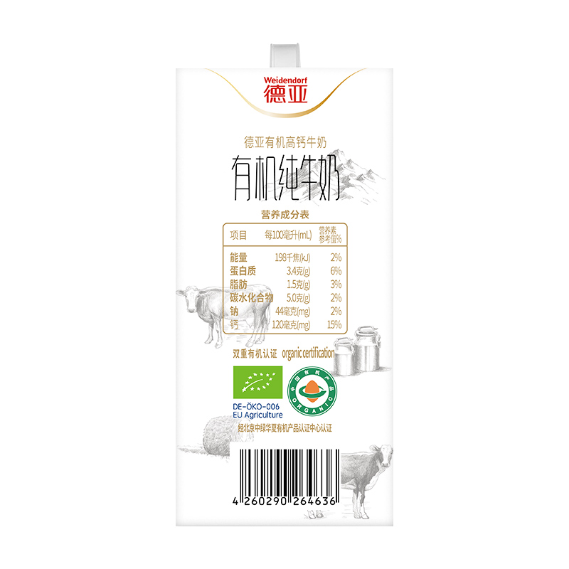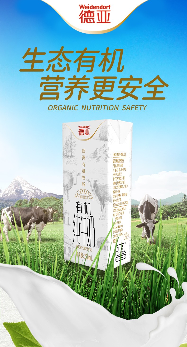 商品名称:德亚低脂高钙有机纯牛奶200ml*10盒礼盒DY3200802