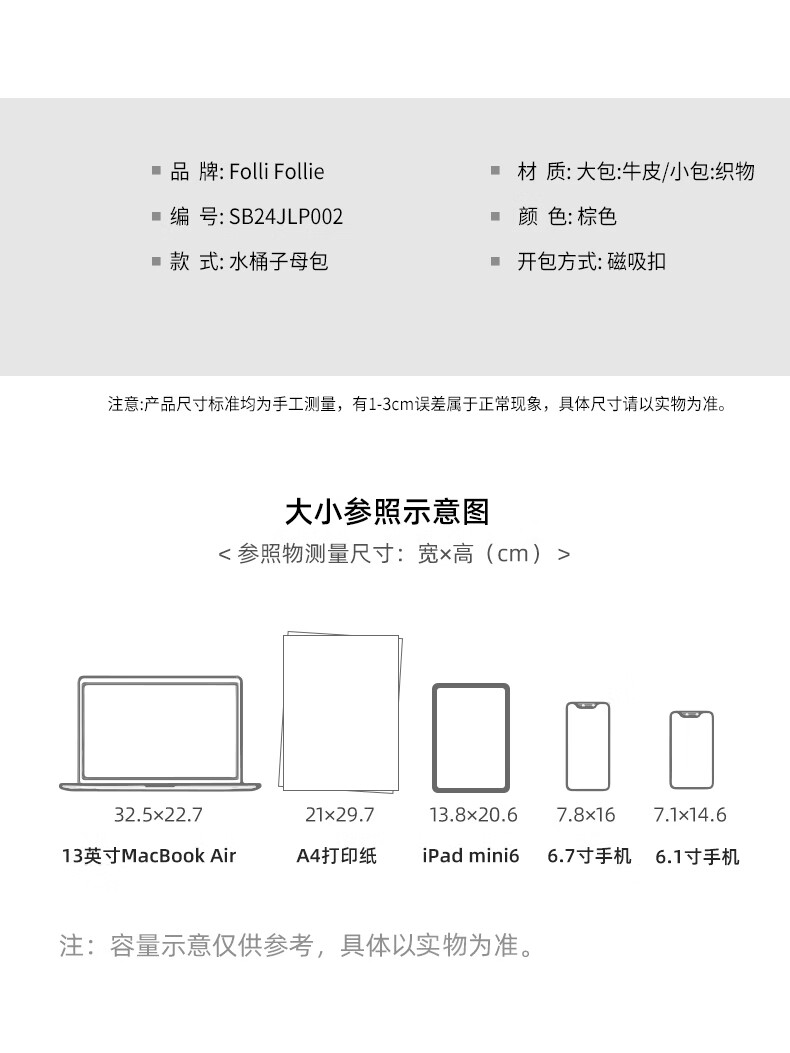 商品名称:FolliFollie 大容量水桶包(两件套)(SB24JLP002)5205340455663 偏远加运费