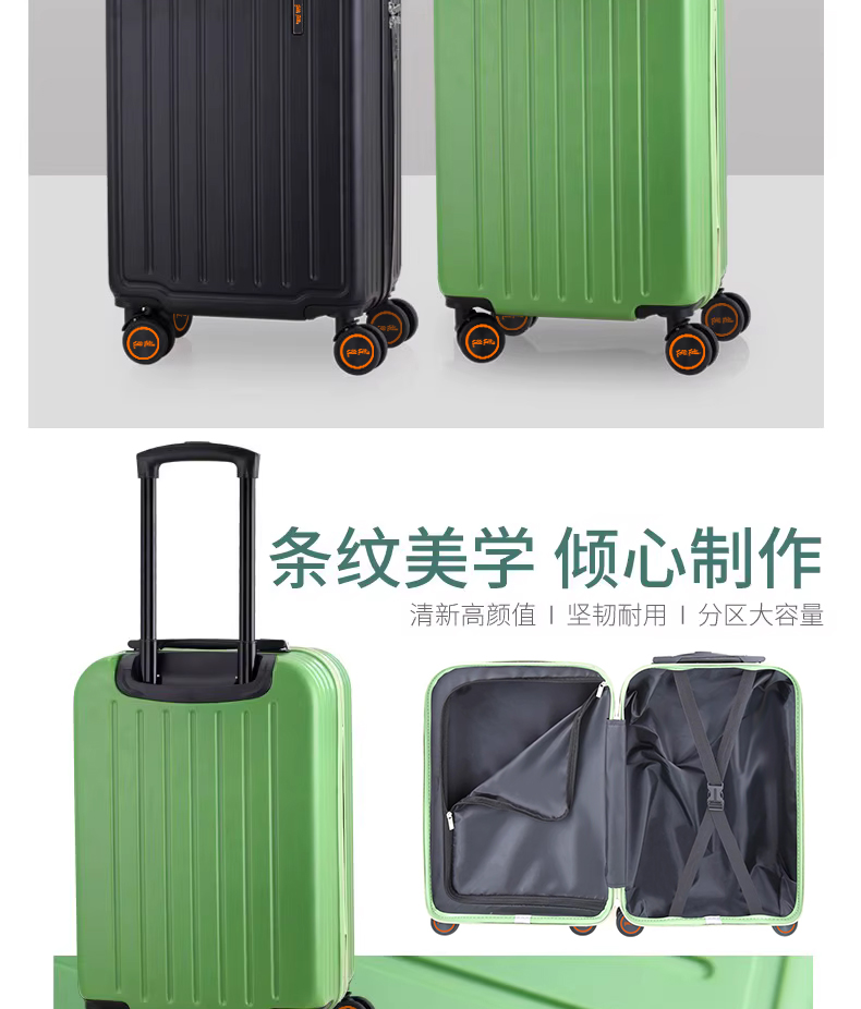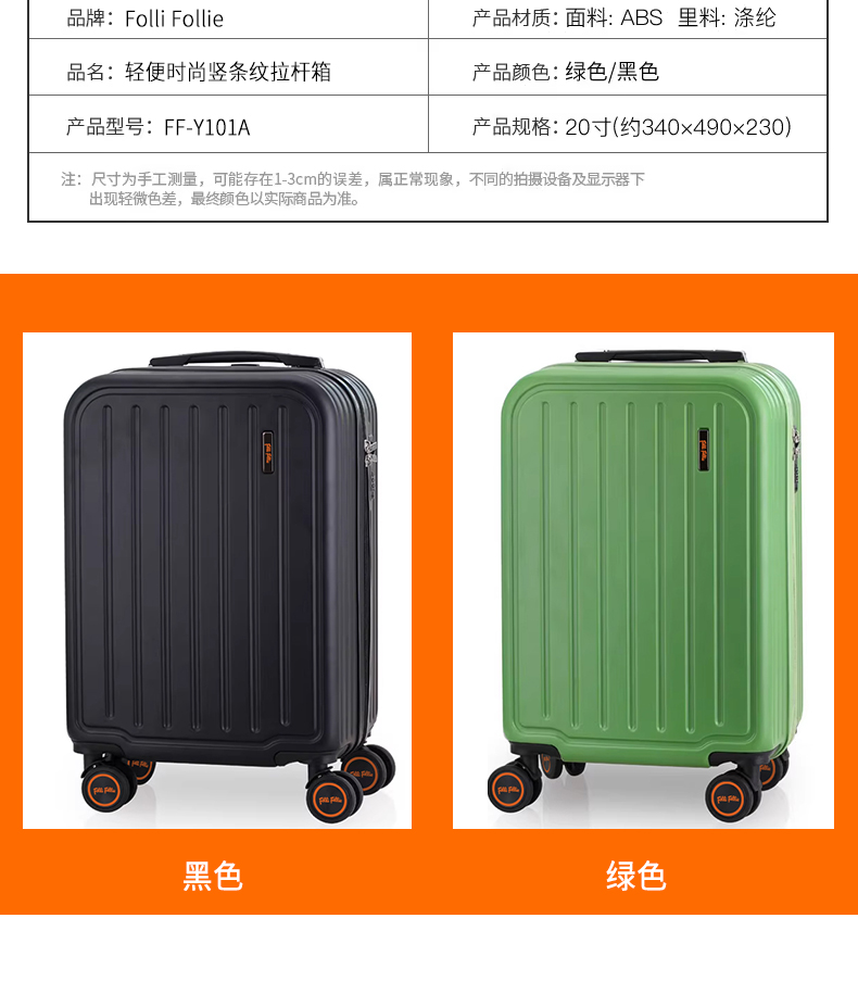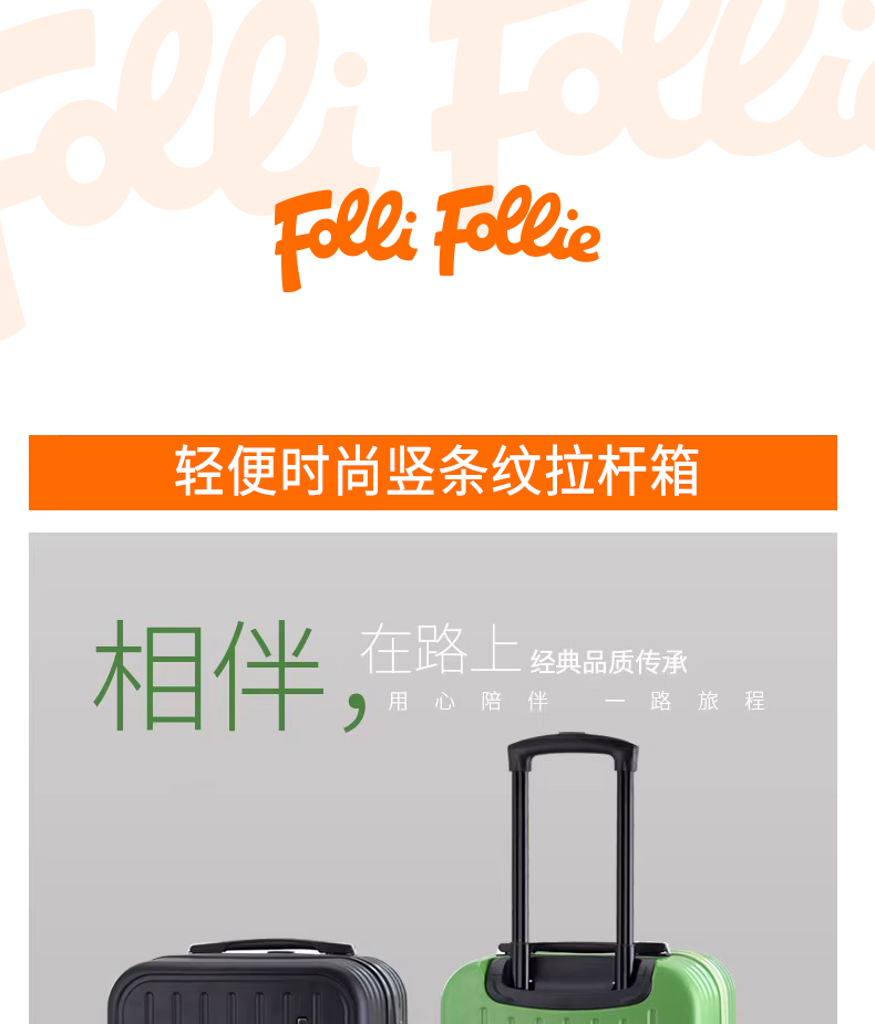 商品名称:FolliFollie时尚轻便竖条纹拉杆箱20英寸绿色 FF-Y101A 5205340626735 偏远加运费