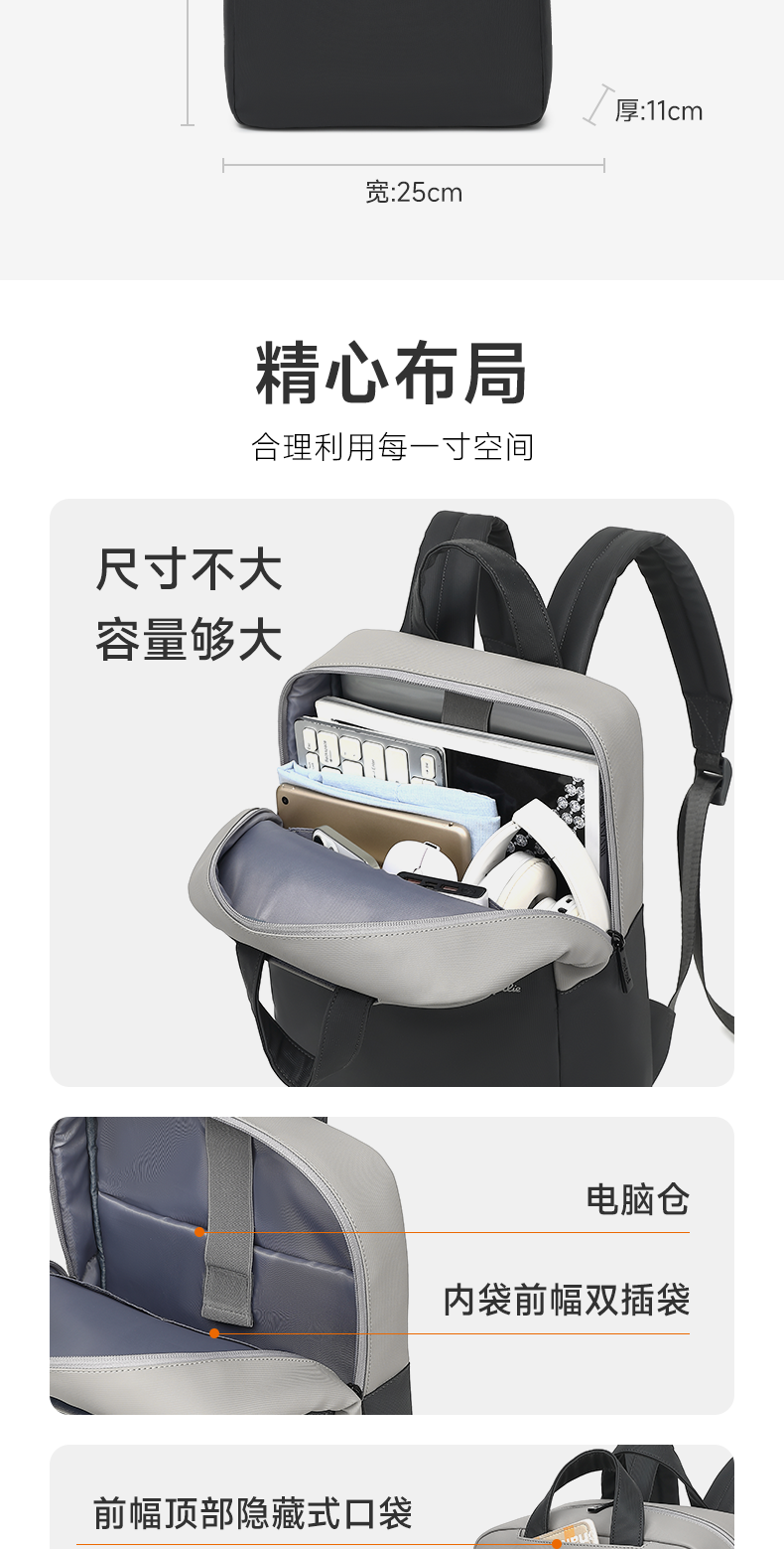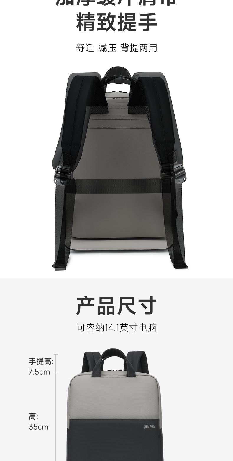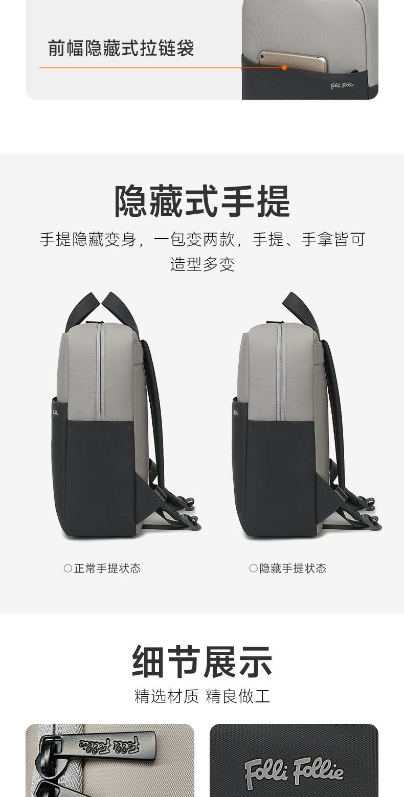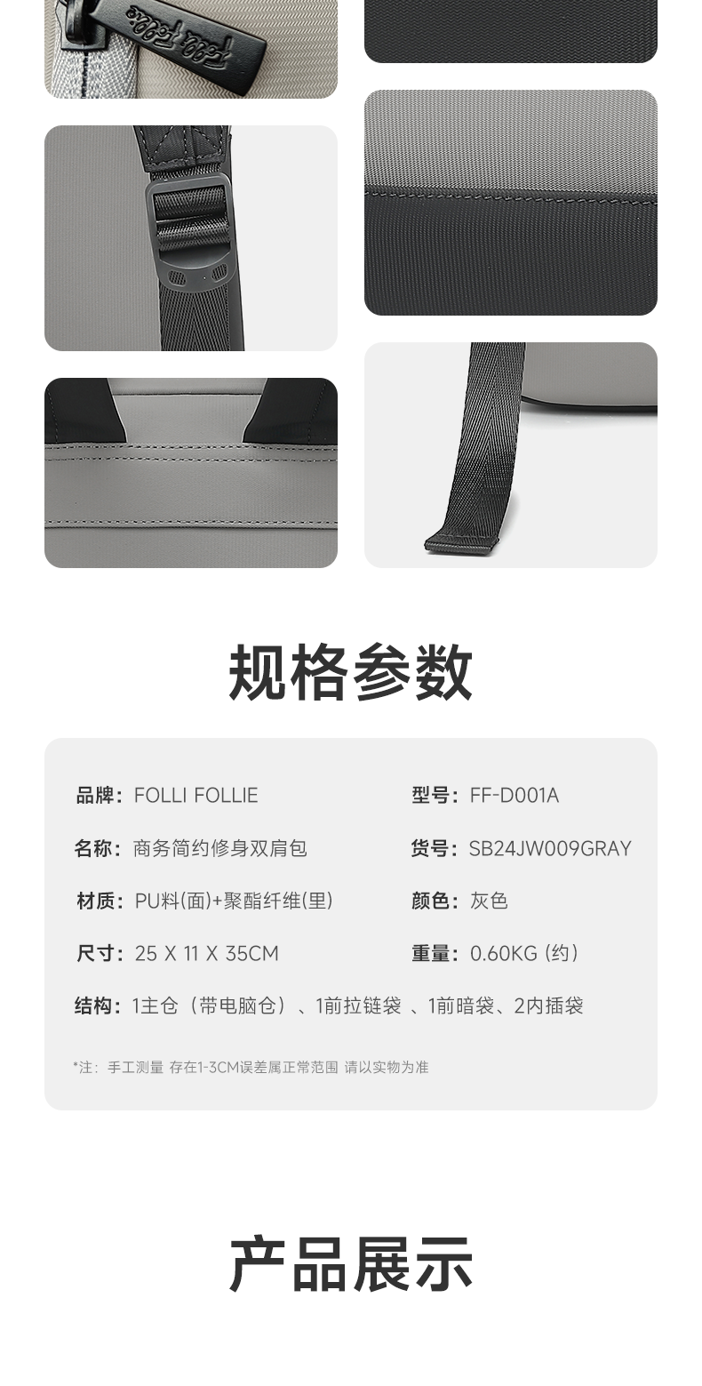 商品名称:FolliFollie 商务简约修身双肩包 FF-D001A 5205340455632