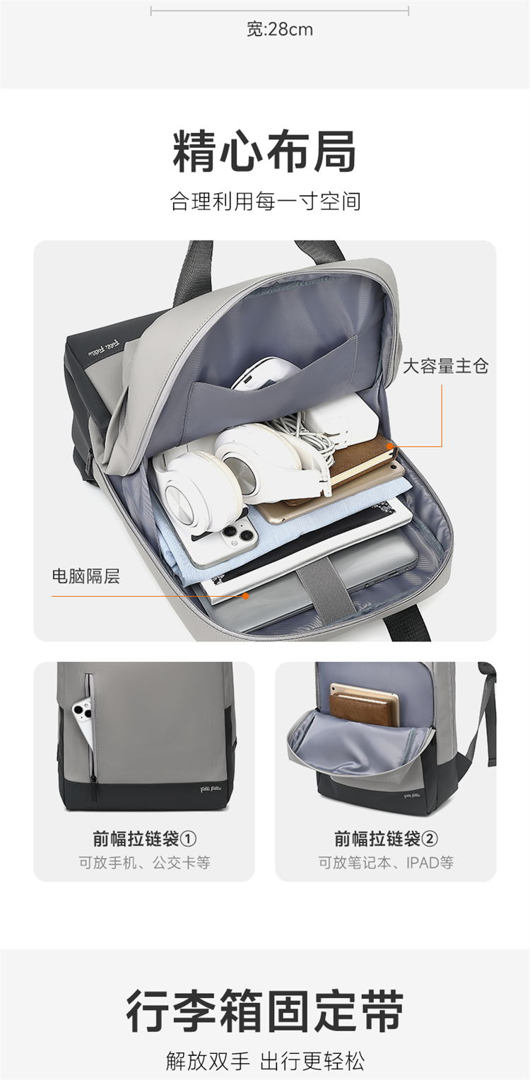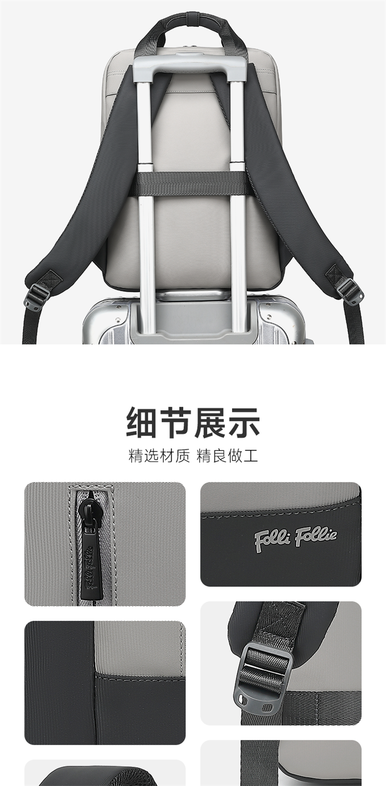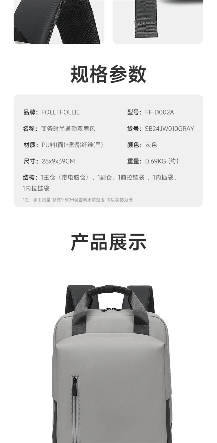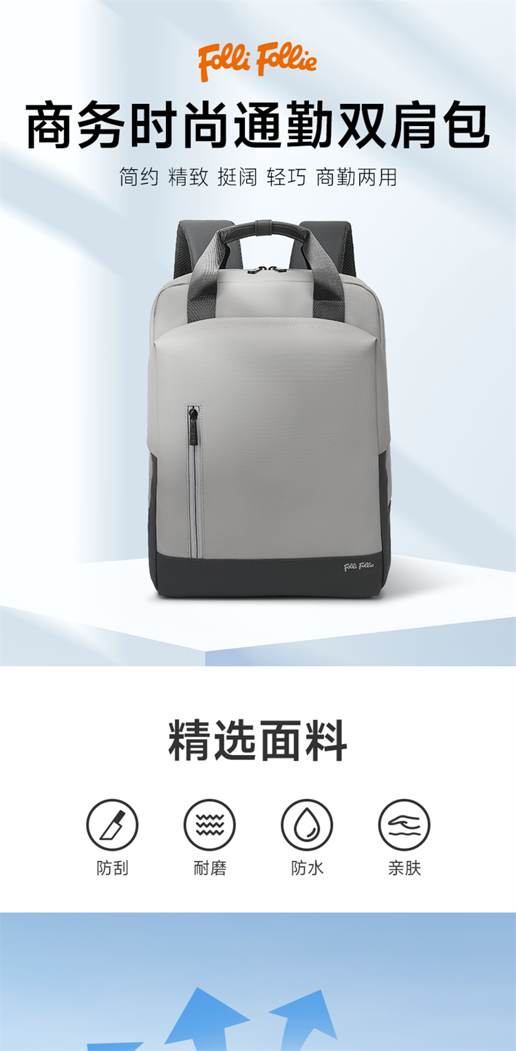 商品名称:FolliFollie 商务简约修身双肩包 FF-D002A 5205340455717 偏远加运费