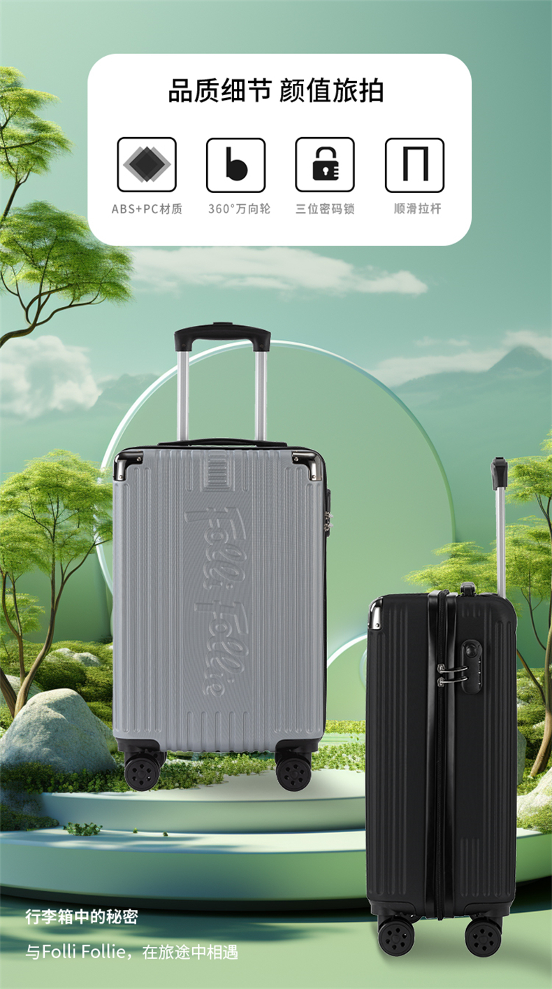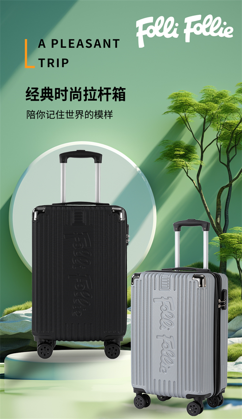FolliFollie时尚轻便竖条纹拉杆箱20英寸绿色 FF-Y101A 5205340626735 偏远加运费