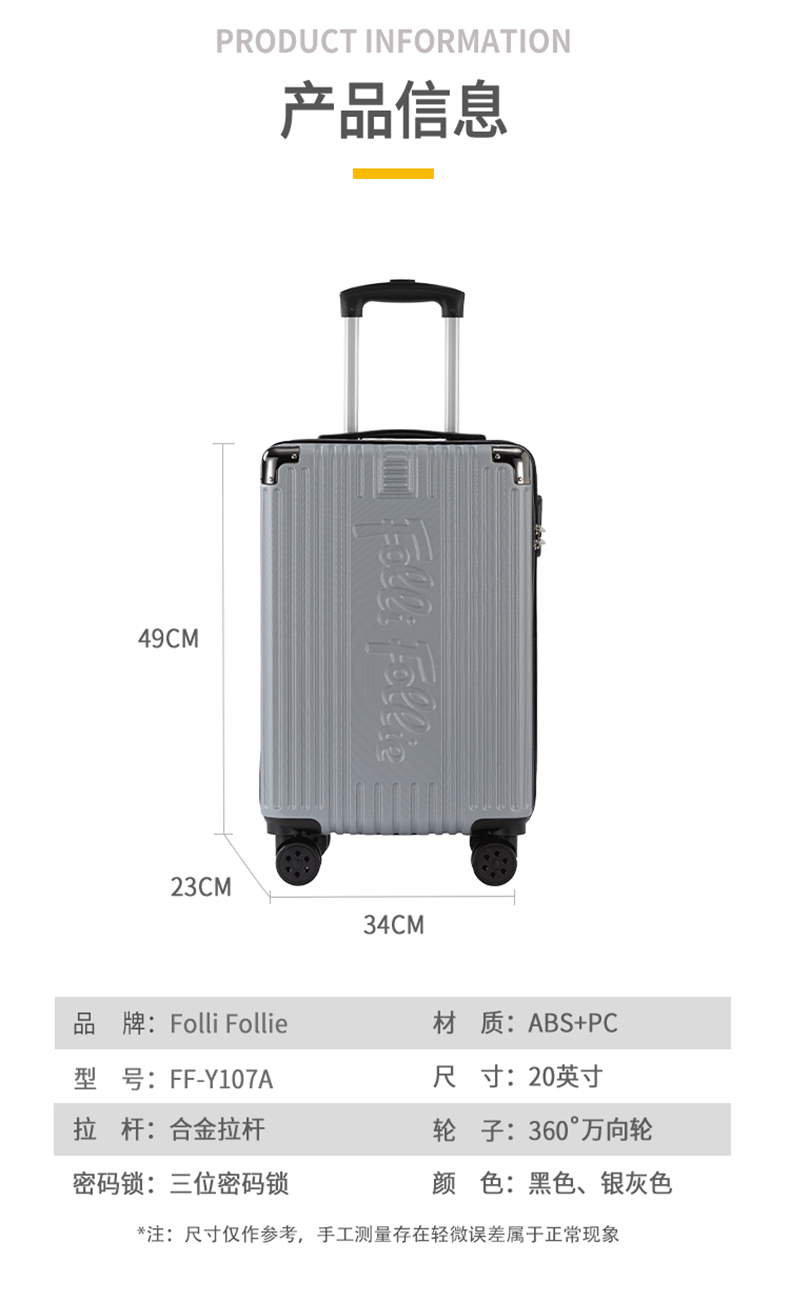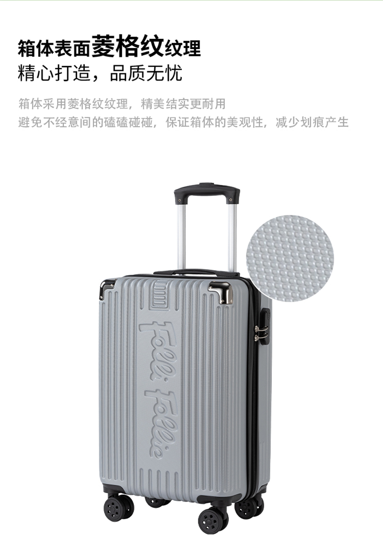 商品名称:FolliFollie 时尚FF竖条纹包角拉杆箱 20英寸银灰色FF-Y107A 5205340473056 偏远加运费