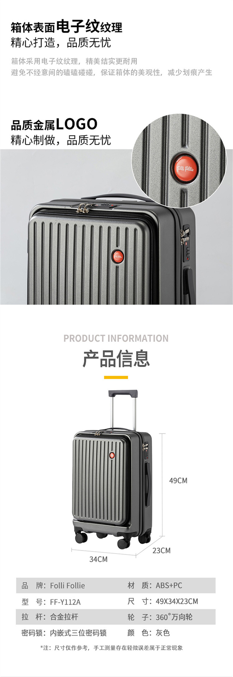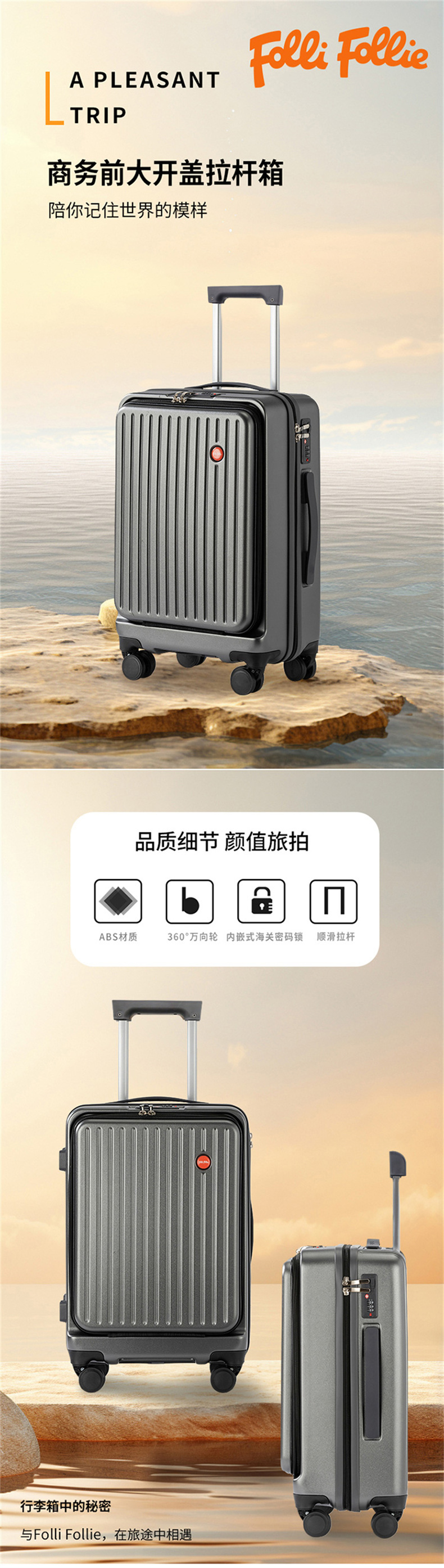 商品名称:FolliFollie 商务前大开盖拉杆箱 20英寸FF-Y112A 5205340683110 偏远加运费