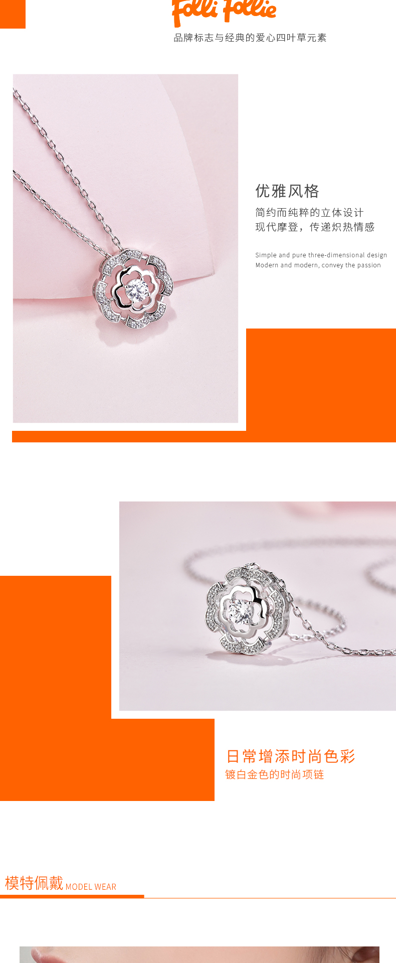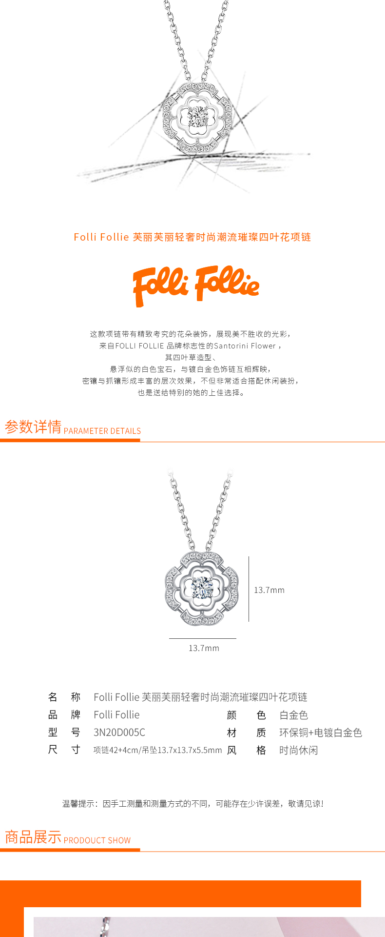 商品名称:FolliFollie 轻奢时尚潮流璀璨四叶花项链 (3N20D005C) 5205340258189 偏远加运费 5205340258189