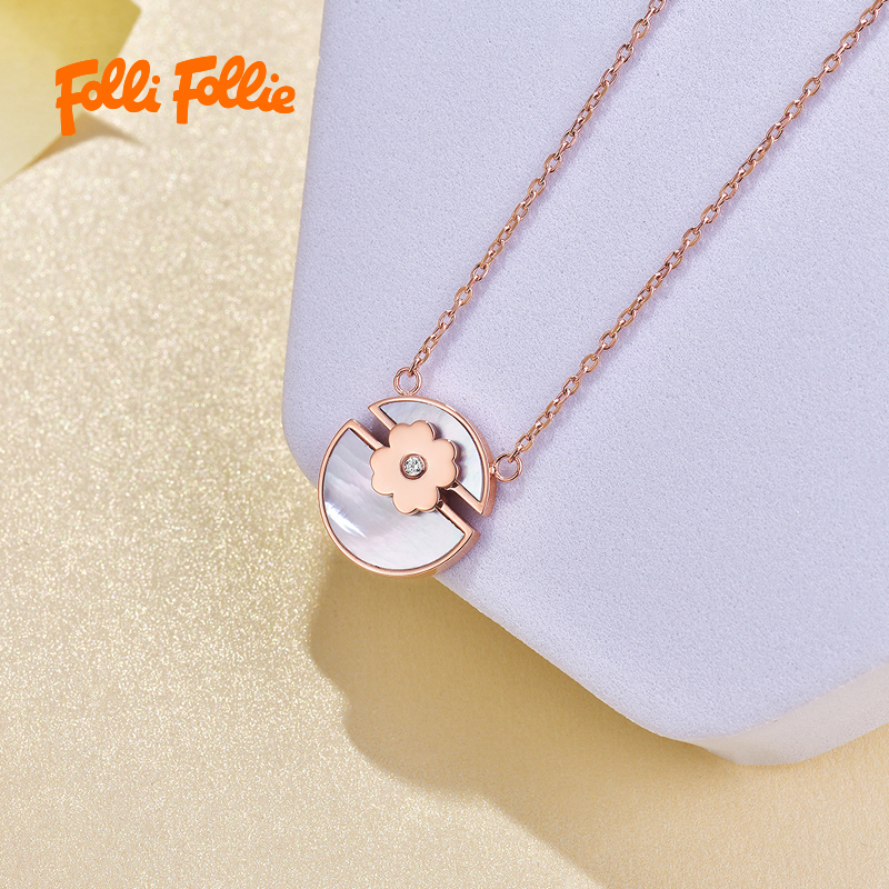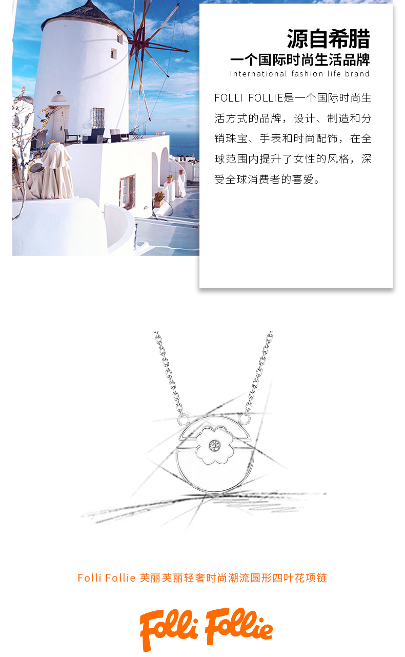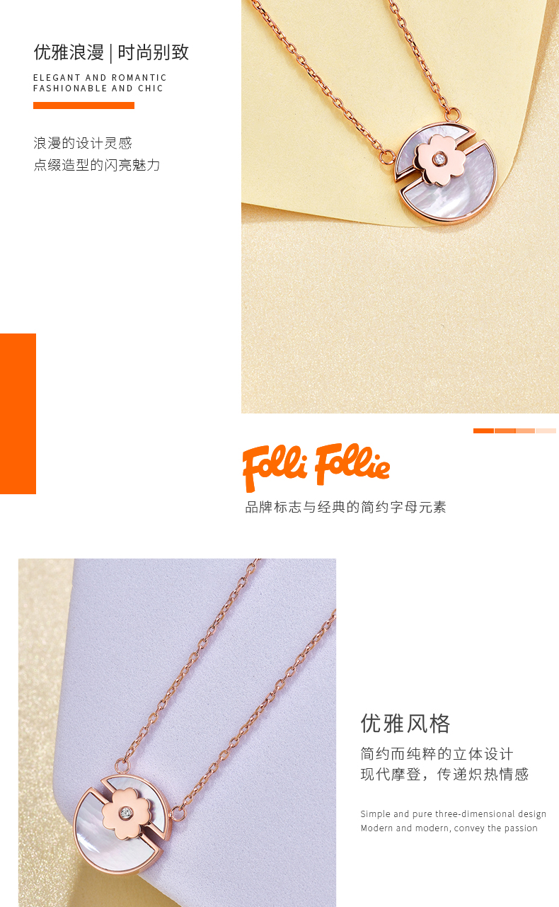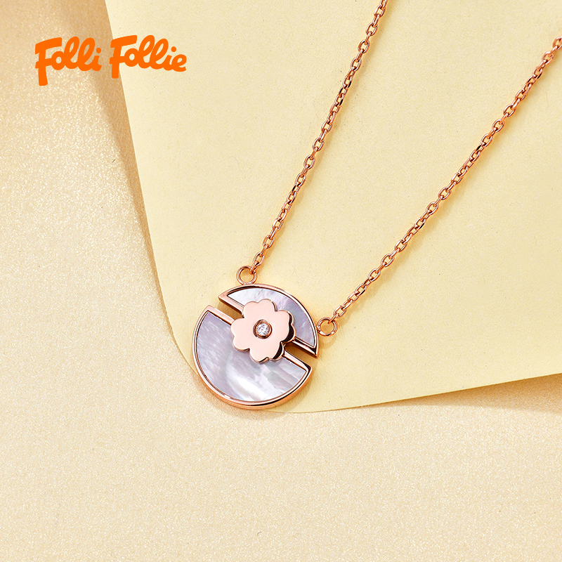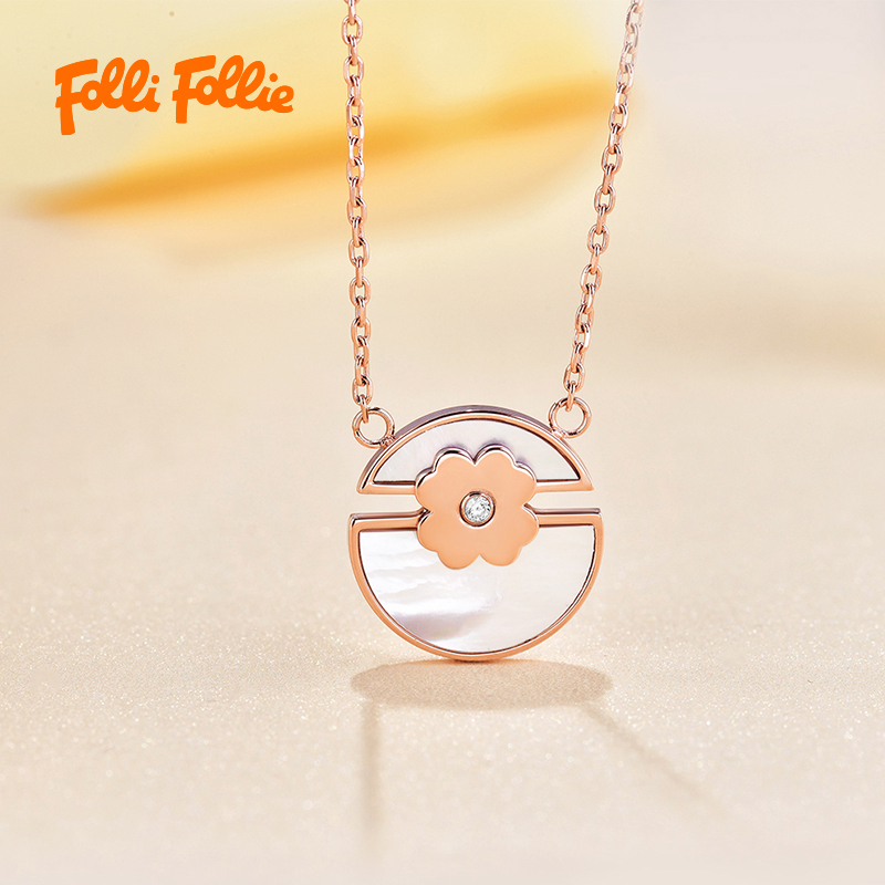 FolliFollie 轻奢时尚潮流圆形四叶花项链 (3N20T009RC) 5205340304190 偏远加运费