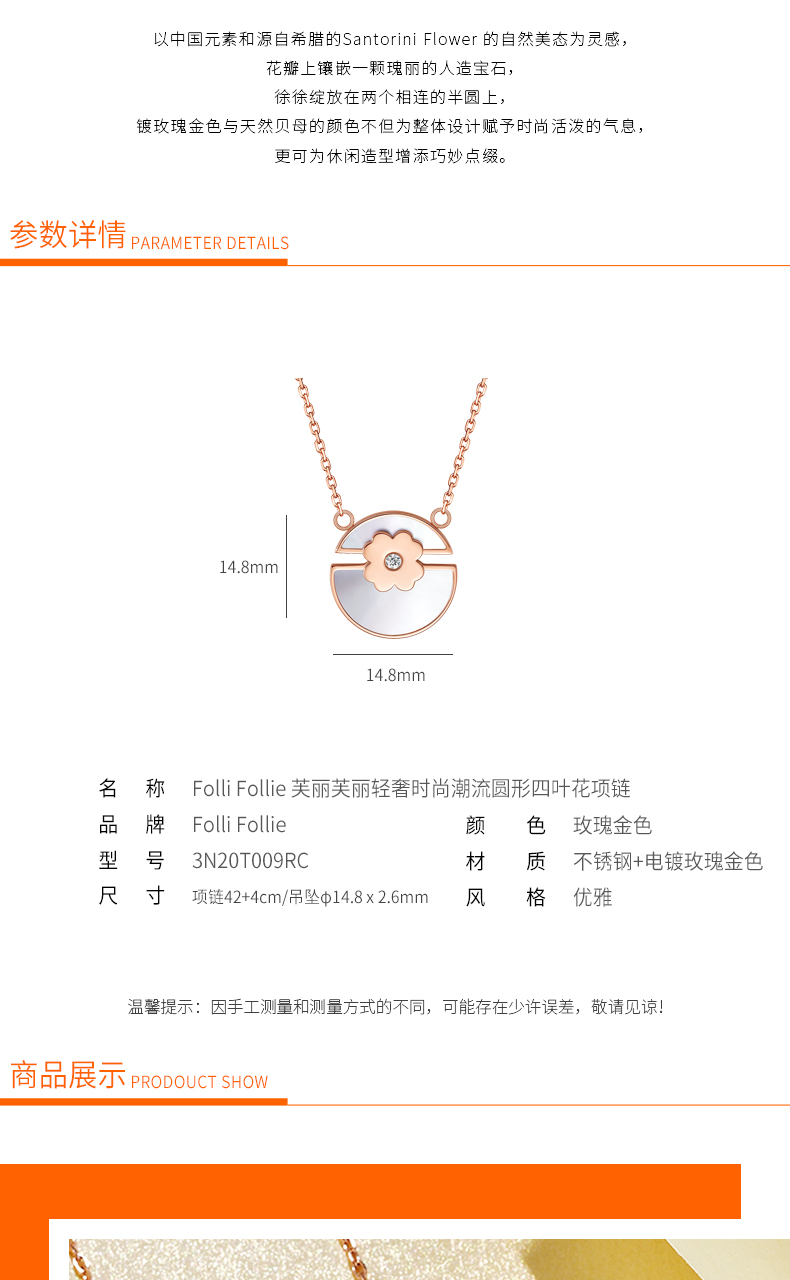 商品名称:FolliFollie 轻奢时尚潮流圆形四叶花项链 (3N20T009RC) 5205340304190 偏远加运费