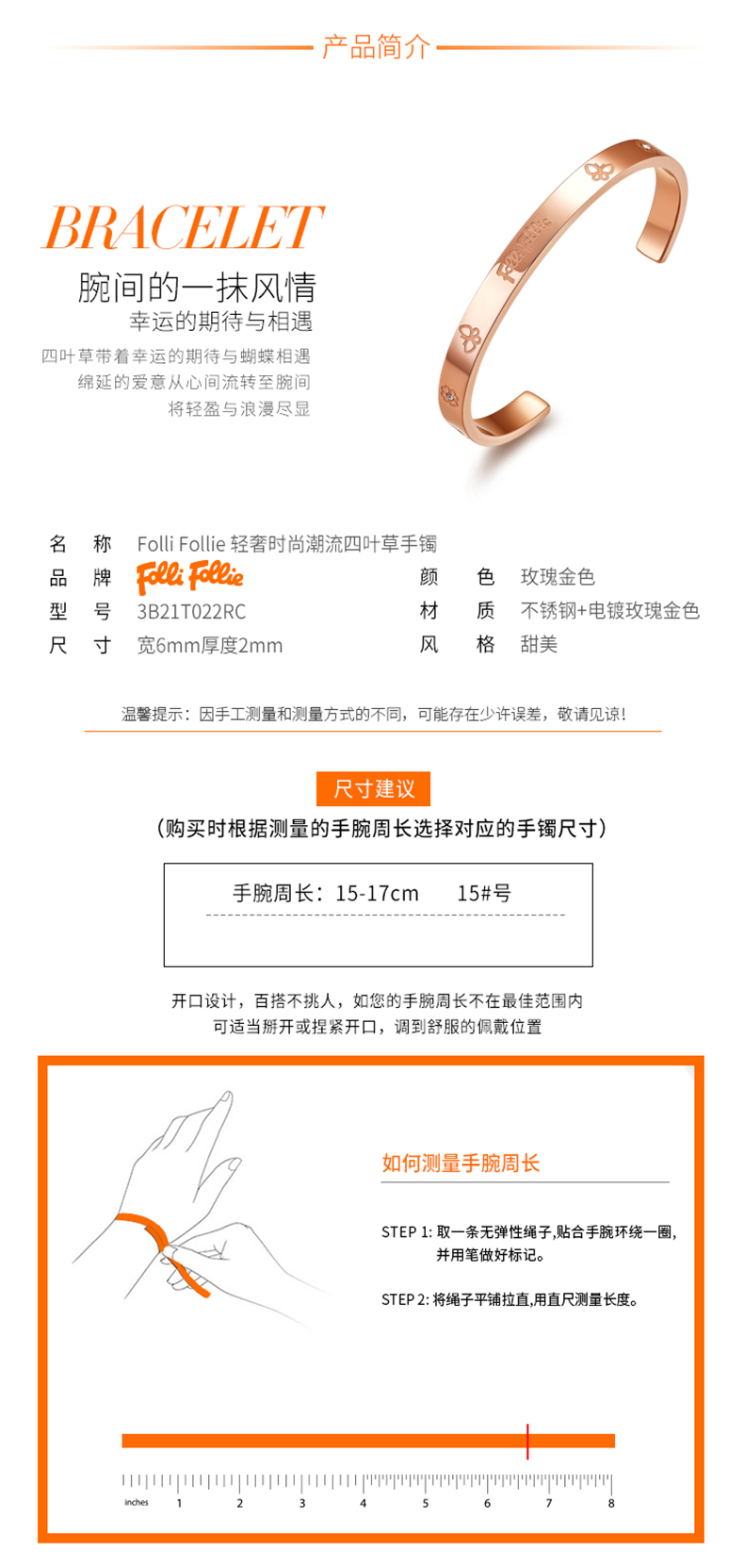 商品名称:FolliFollie四叶草手镯(大号镯)(3B21T022RC) 5205340406139 偏远加运费