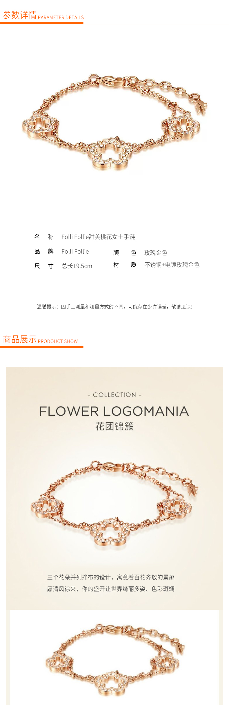 商品名称:FolliFollie 甜美桃花瓣手链 (3B17T104RC) 5205340615180 偏远加运费