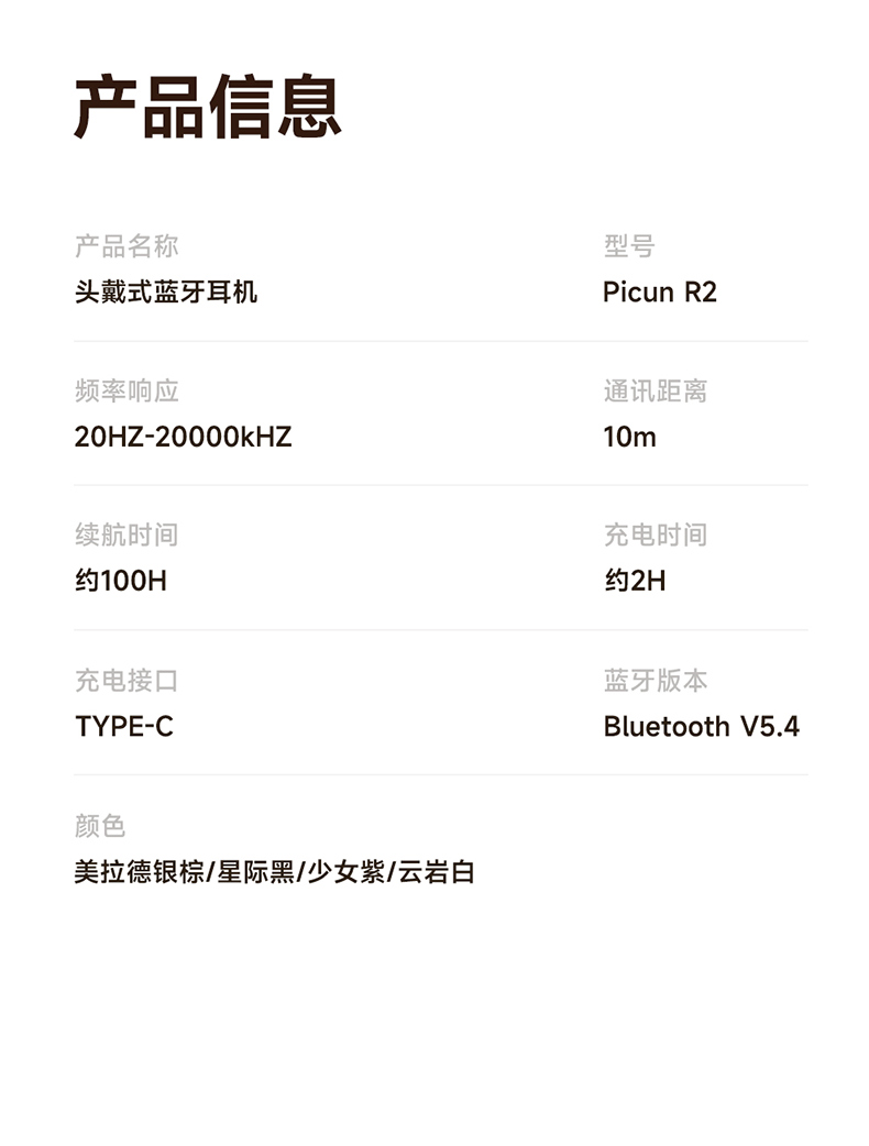 商品名称:品存(picun) 复古头戴式无线蓝牙耳机 R2银黑色 6970604903653 偏远加运费