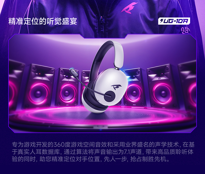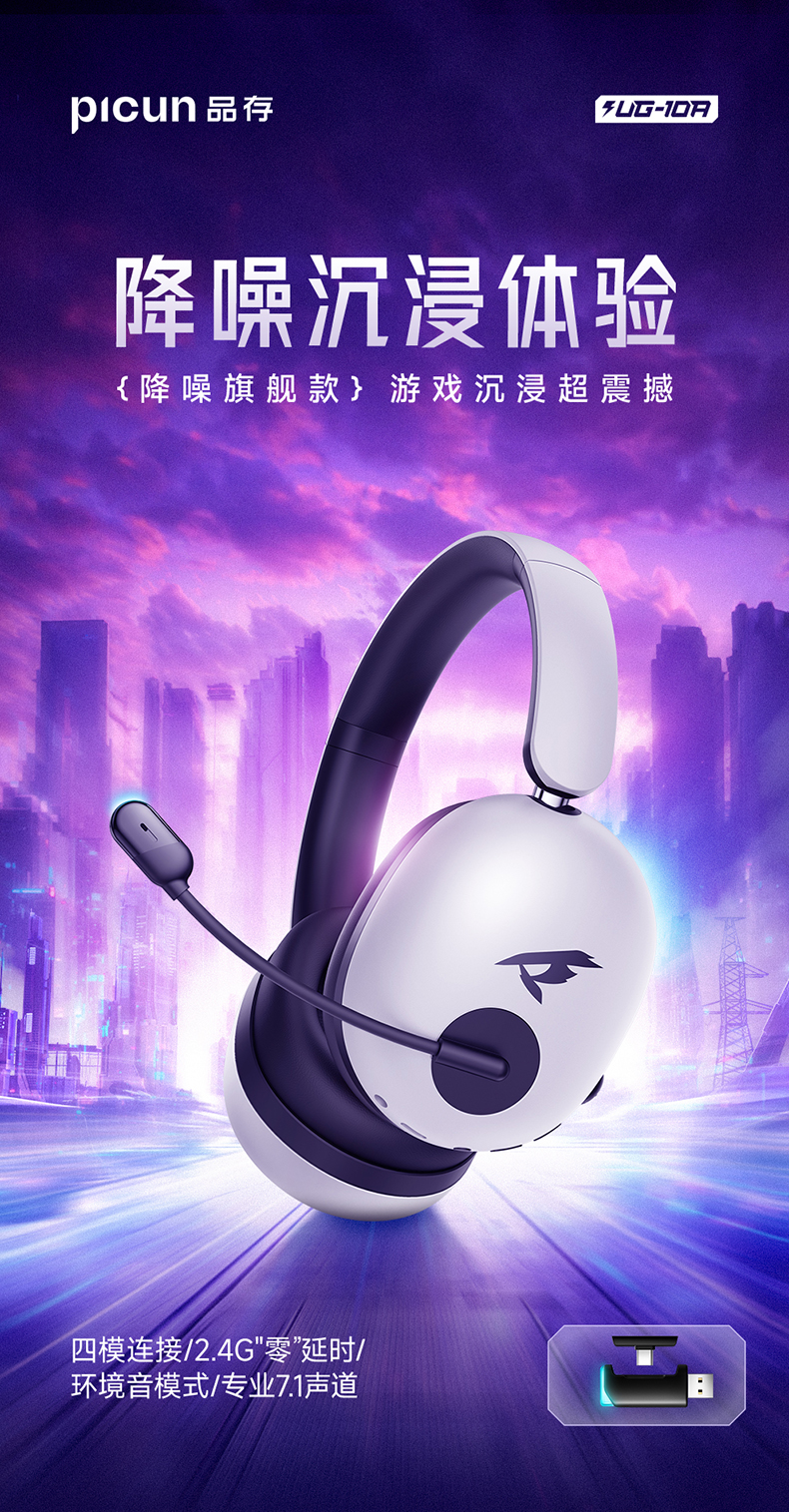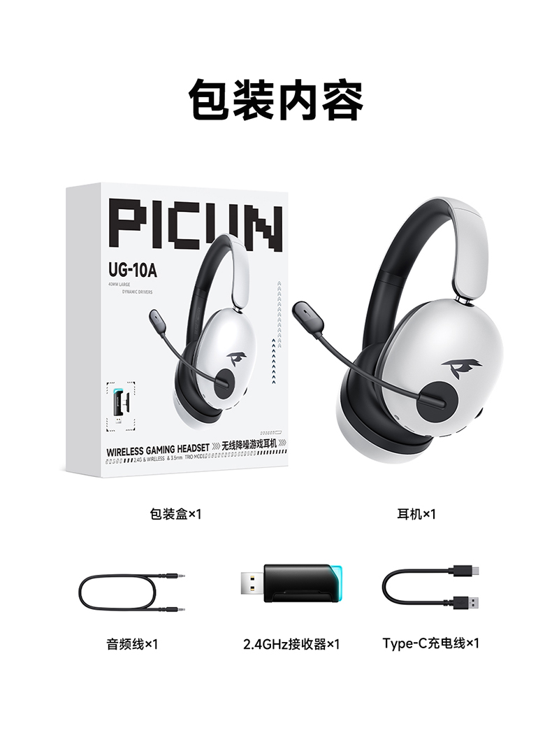 品存(picun) 降噪头戴式耳机电竞游戏专用无线蓝牙2.4g电脑带耳麦 UG-10A太空灰 6970604903998 偏远加运费