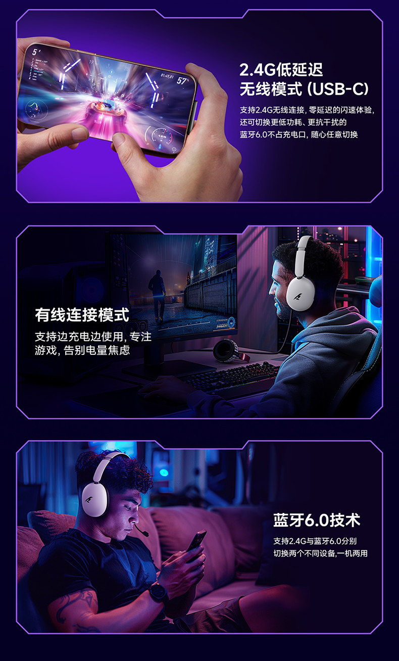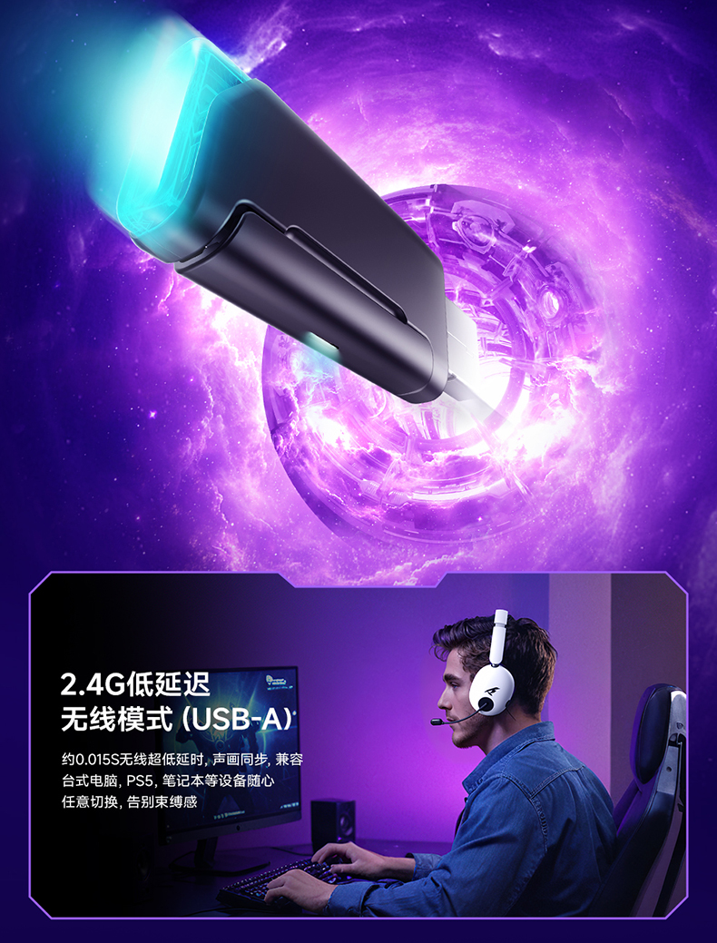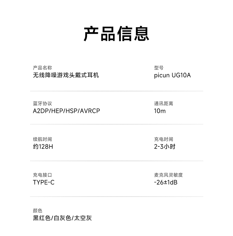 商品名称:品存(picun) 降噪头戴式耳机电竞游戏专用无线蓝牙2.4g电脑带耳麦 UG-10A太空灰 6970604903998 偏远加运费