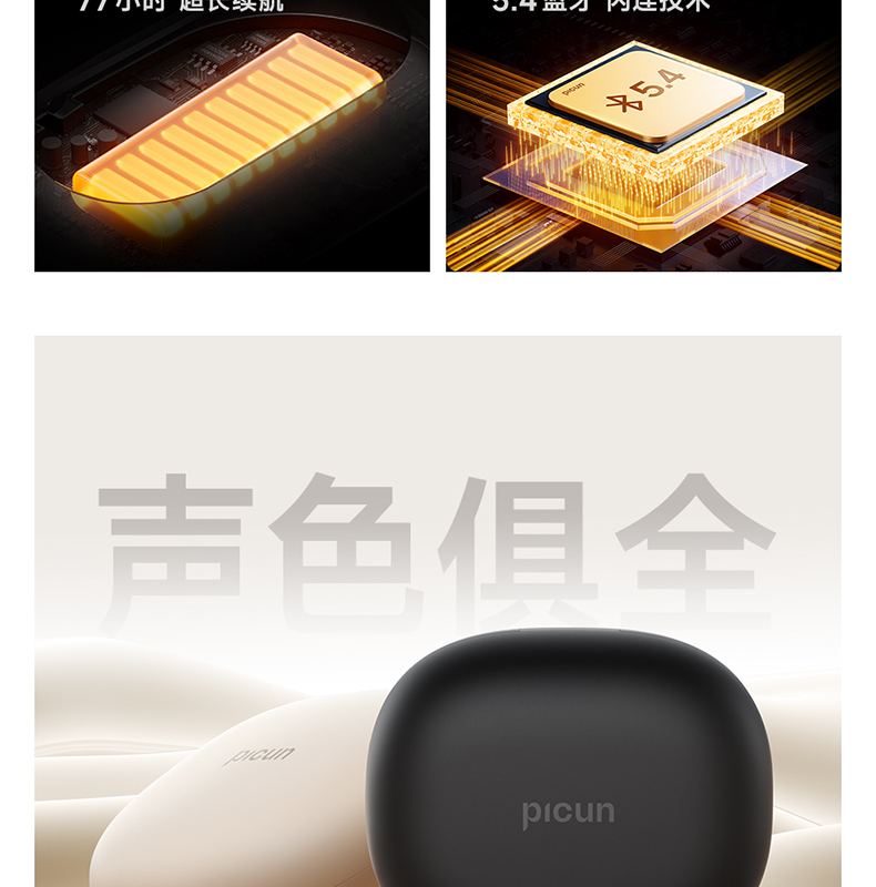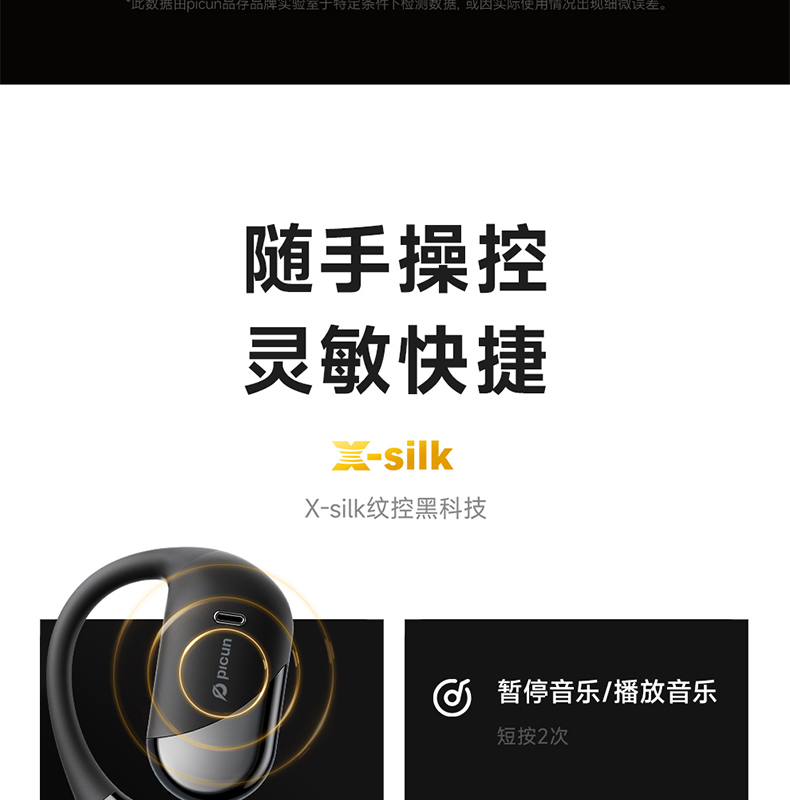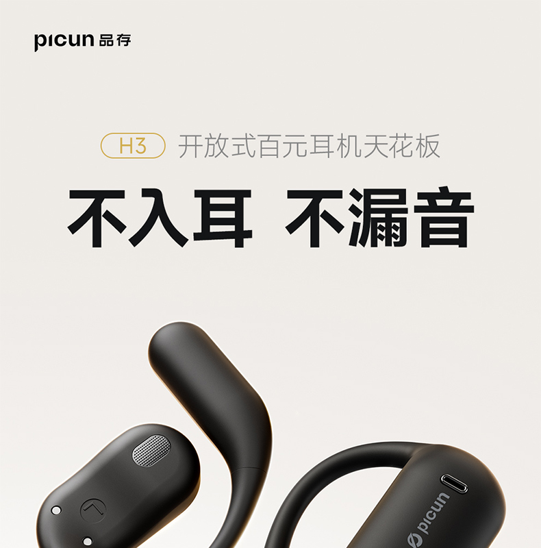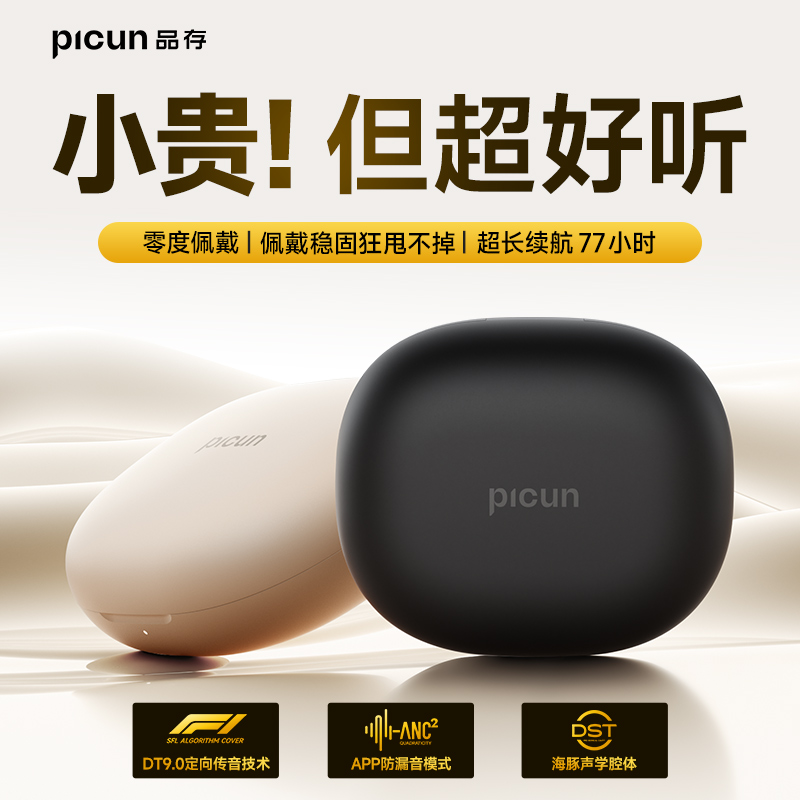 品存(picun) 防漏音耳夹式防丢耳机 W3 Pro黑色/白 6970604903844 偏远加运费