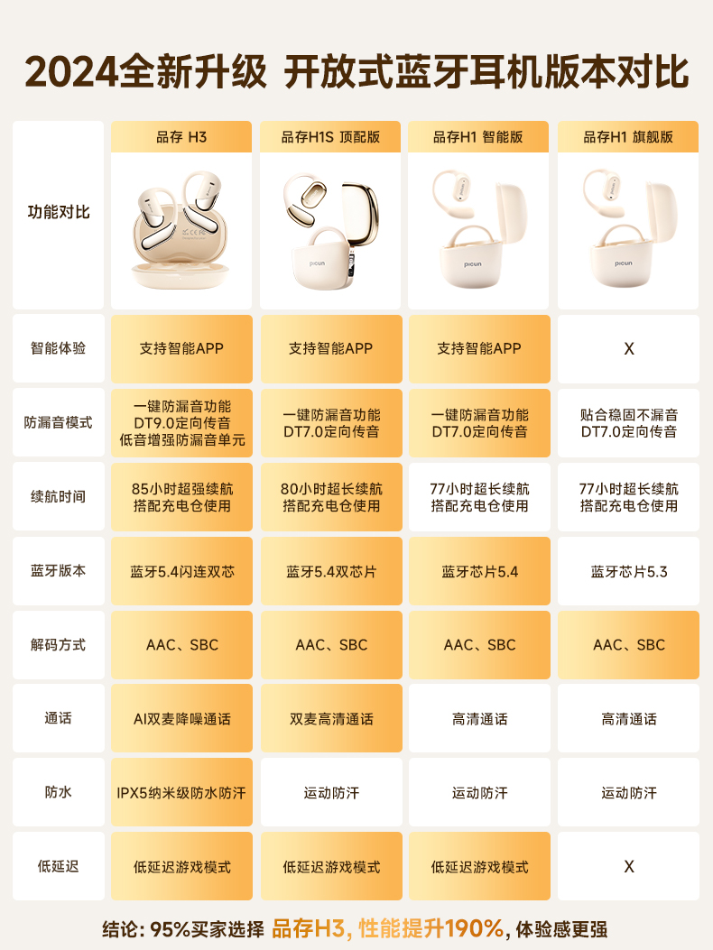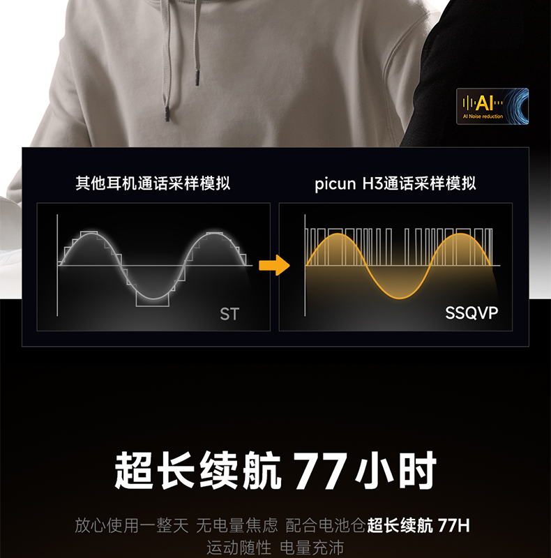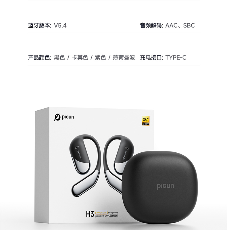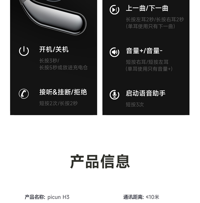 商品名称:品存(picun)双麦耳挂骨传导纳米级防汗防水无线耳机 H3黑色 6970604903295 偏远加运费
