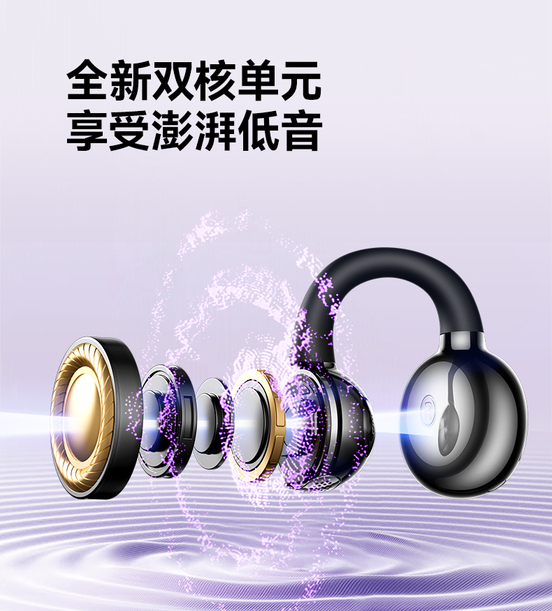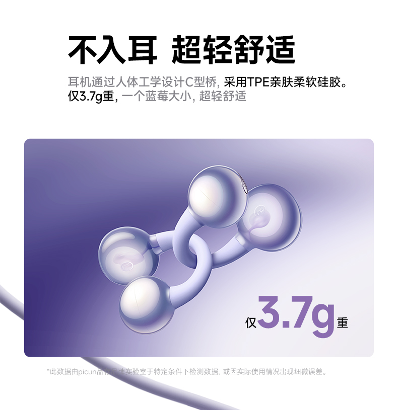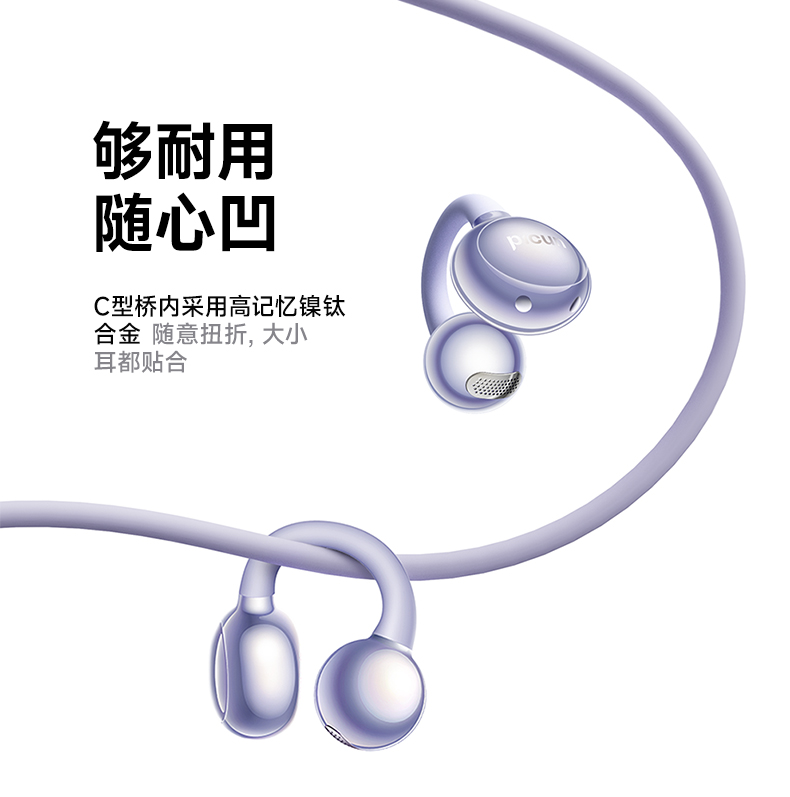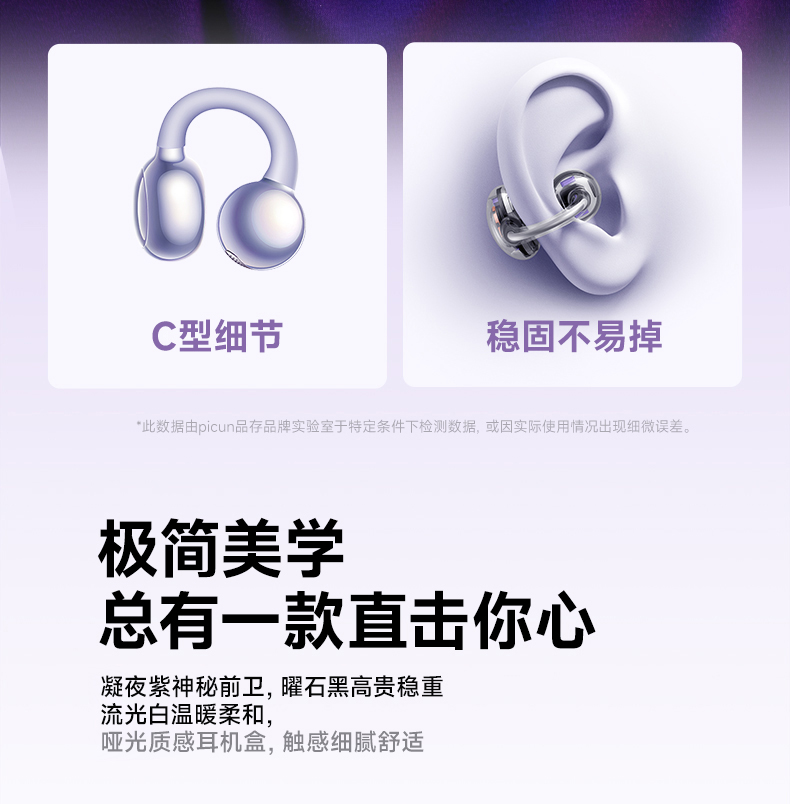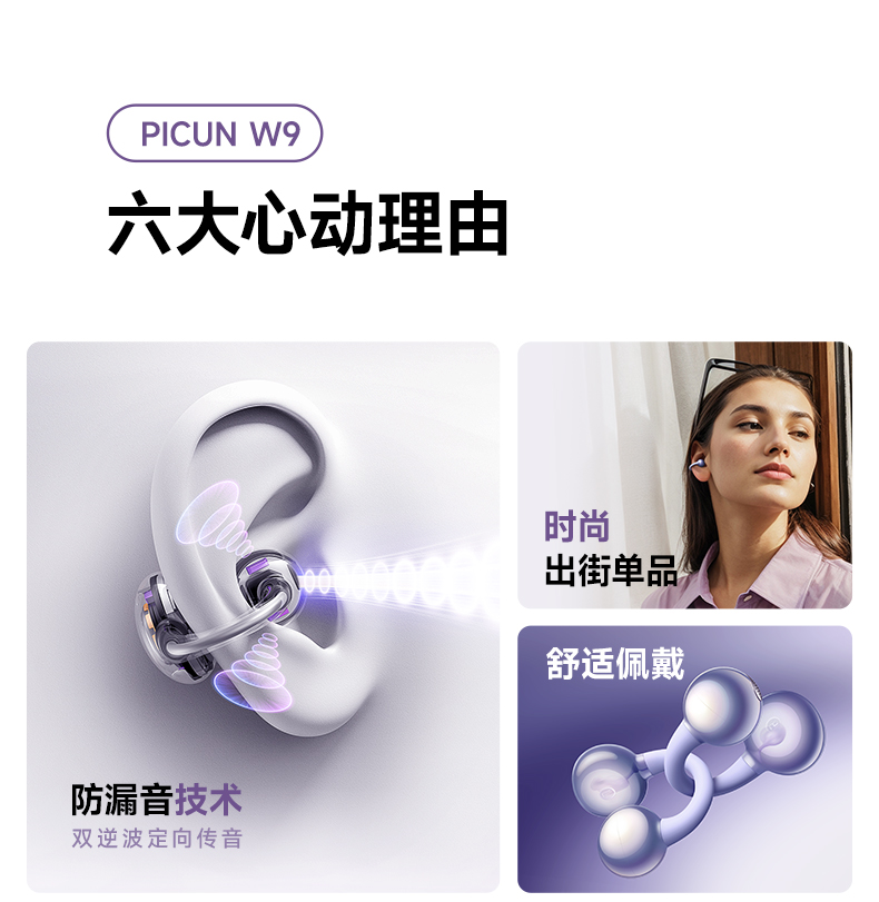 商品名称:品存(picun) 耳夹式AI降噪耳机 W9黑色/紫色 6970604903776 偏远加运费