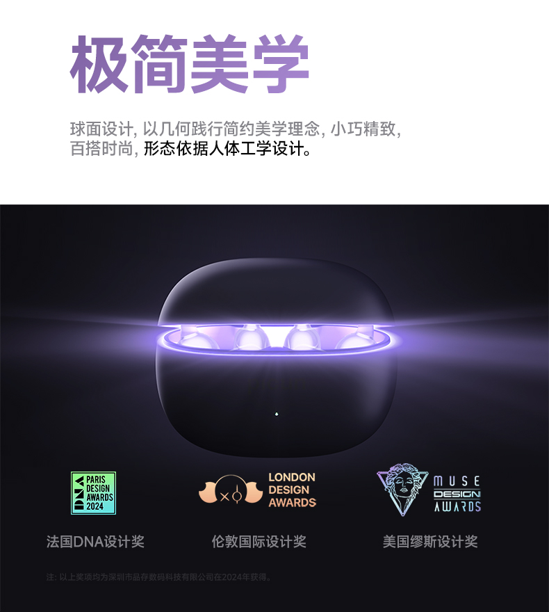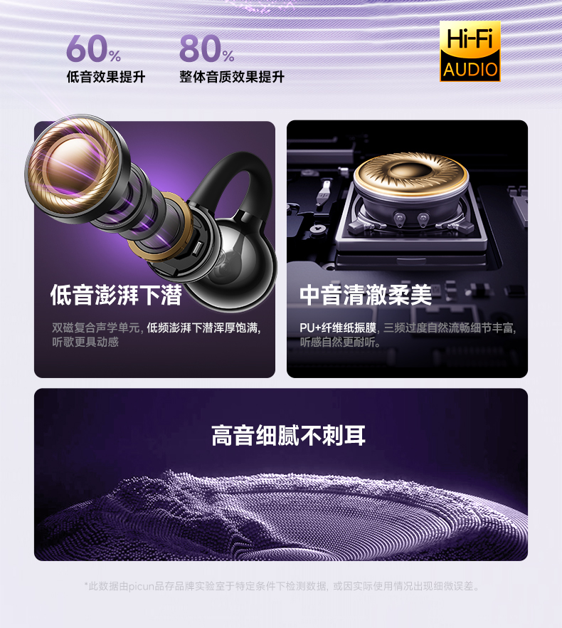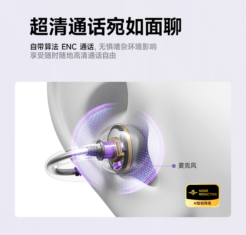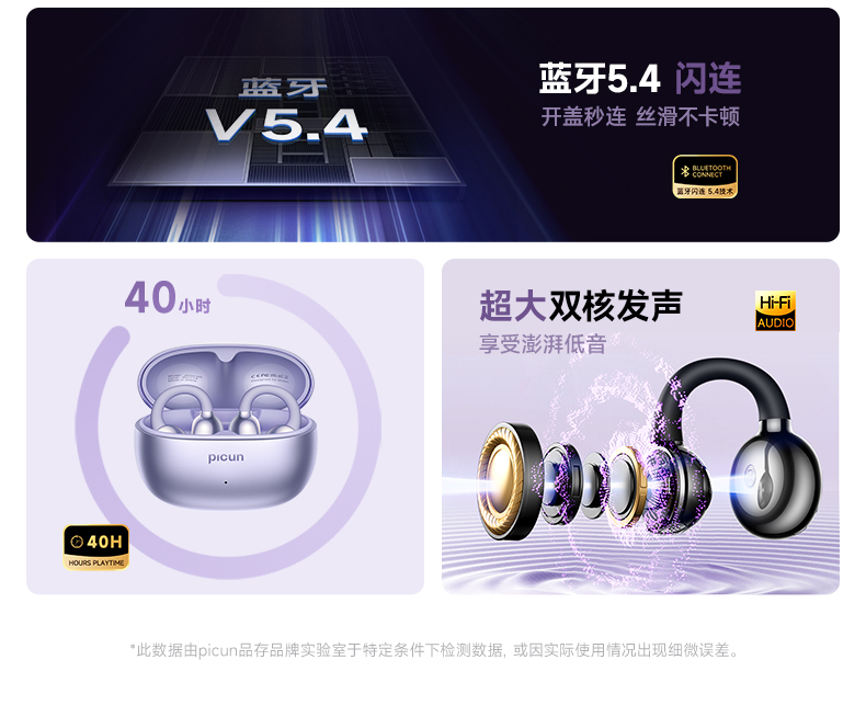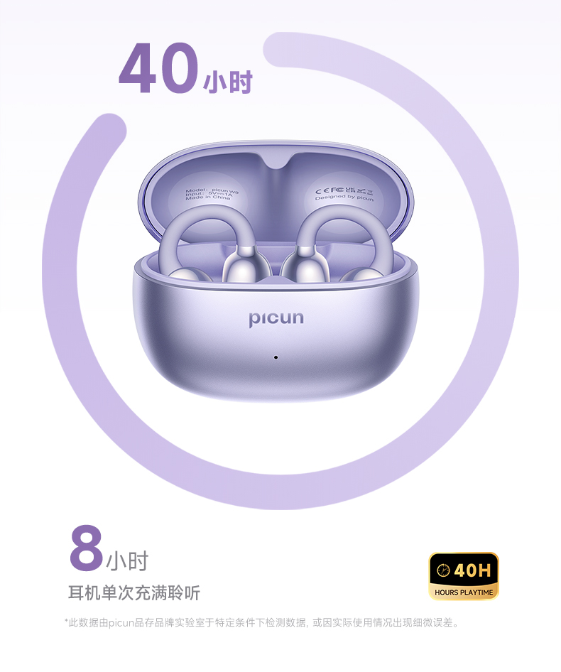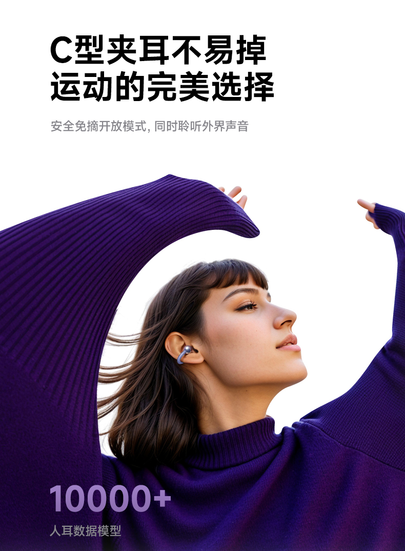 商品名称:品存(picun) 耳夹式AI降噪耳机 W9黑色/紫色 6970604903776 偏远加运费