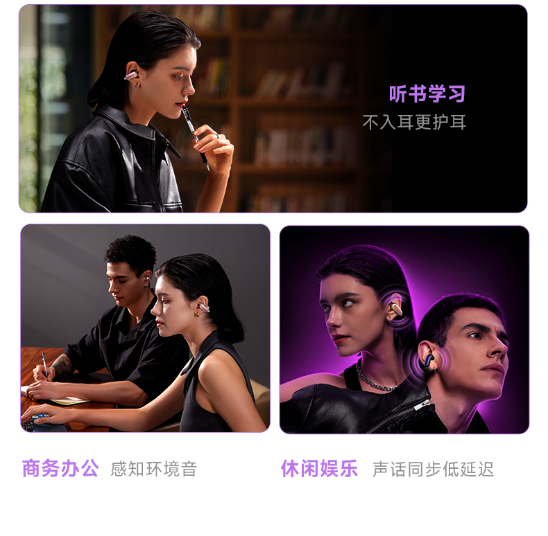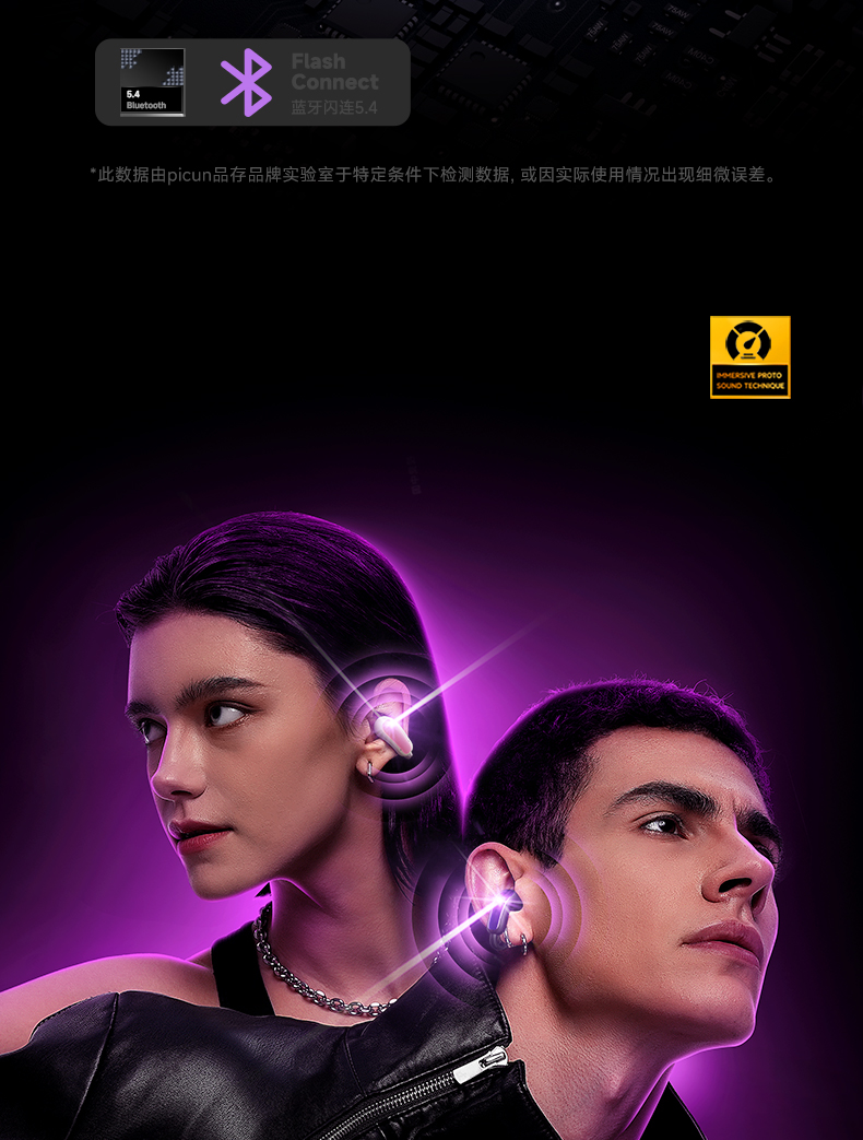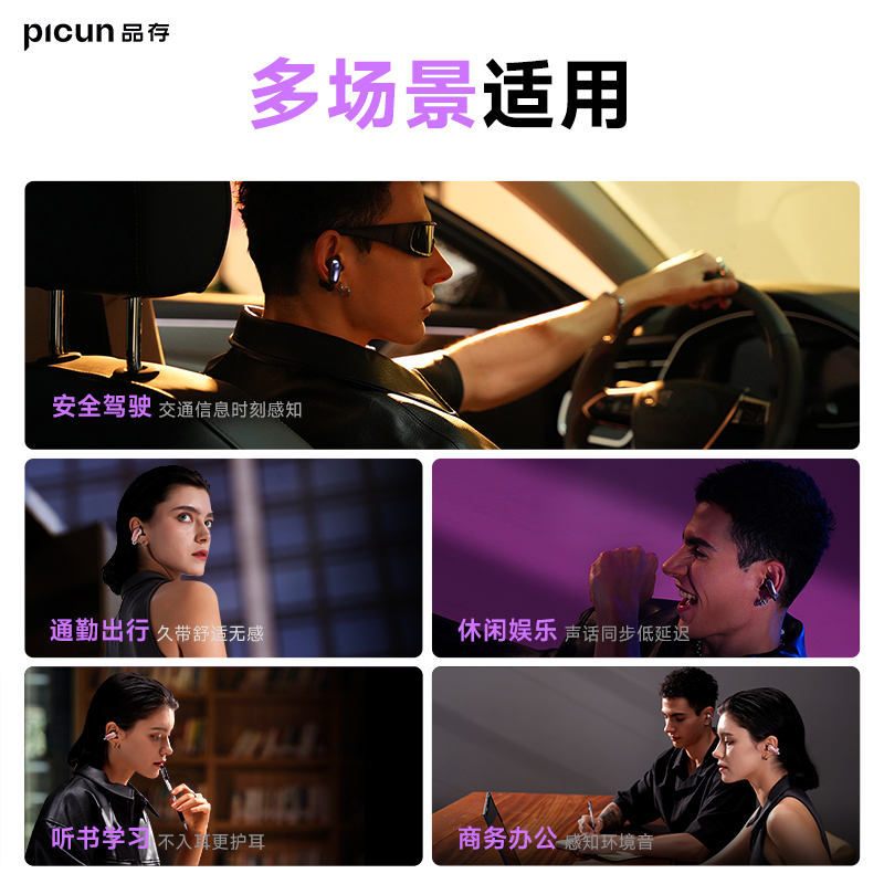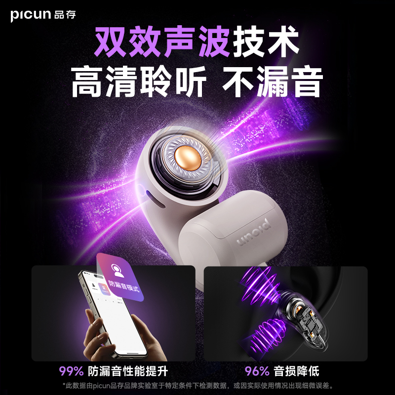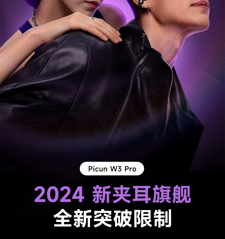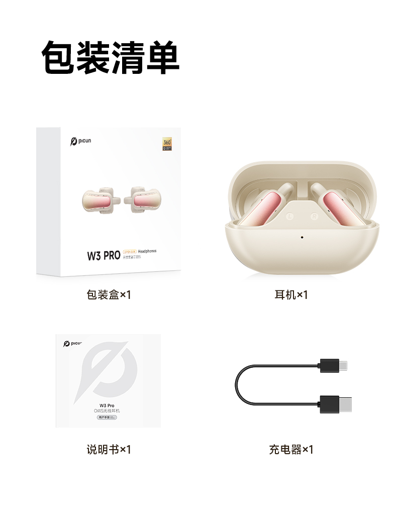 品存(picun) 防漏音耳夹式防丢耳机 W3 Pro黑色/白 6970604903844 偏远加运费
