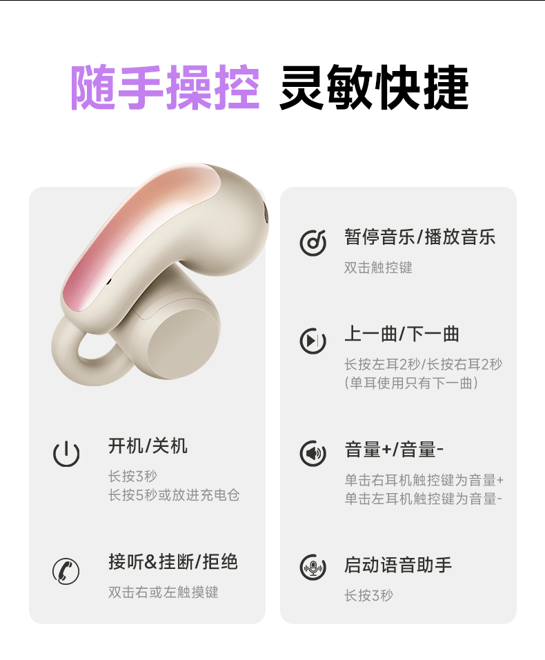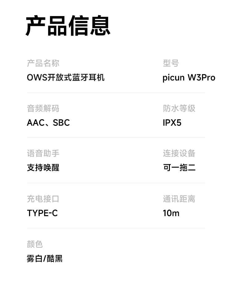 商品名称:品存(picun) 防漏音耳夹式防丢耳机 W3 Pro黑色/白 6970604903844 偏远加运费