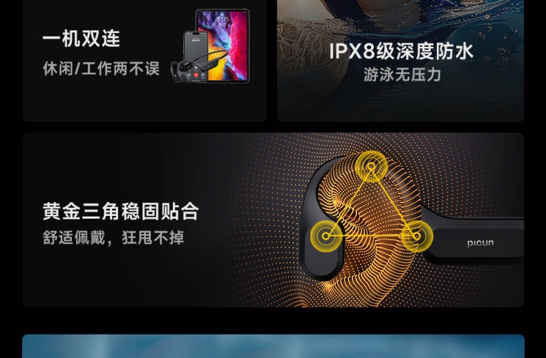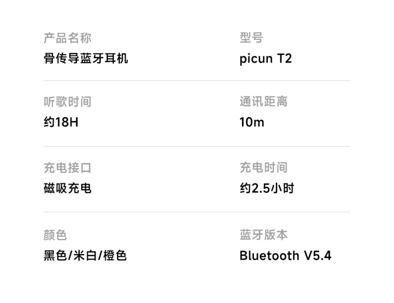 商品名称:品存(picun) 防水骨传导磁吸充电一机双连耳机 T2黑色/米白色 6970604903608 偏远加运费
