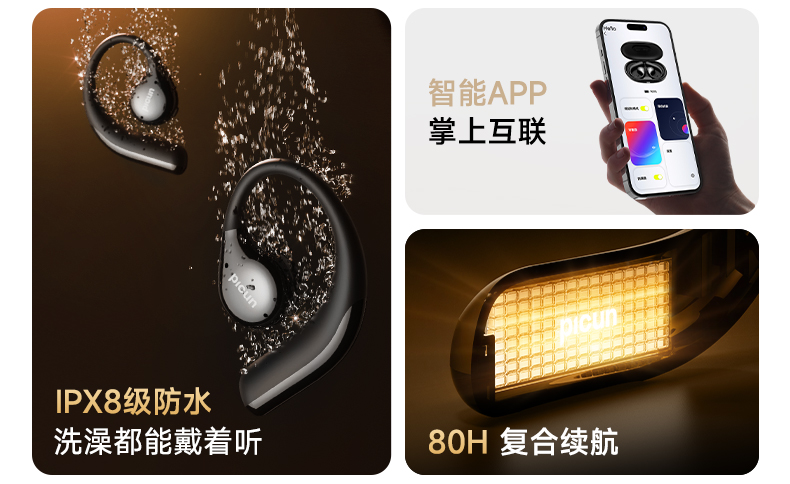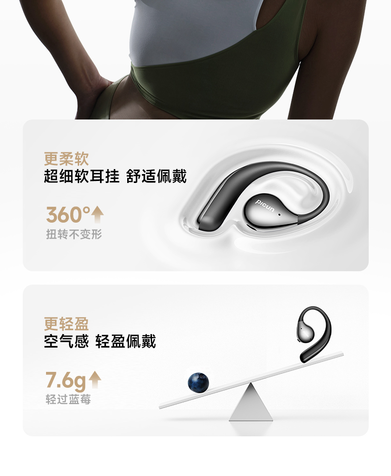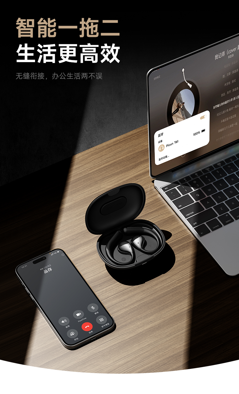 品存(picun) 智能降噪耳挂骨传导无孔I耳机 T61樱花粉/绿/白/黑 6970604903974 偏远加运费