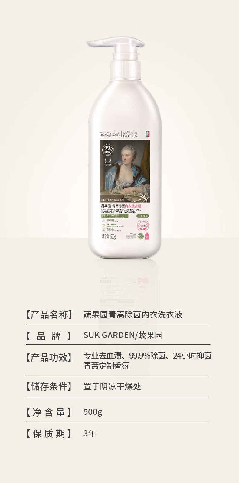 商品名称:SukGarden蔬果园青蒿除菌内衣洗衣液500gSGY0364