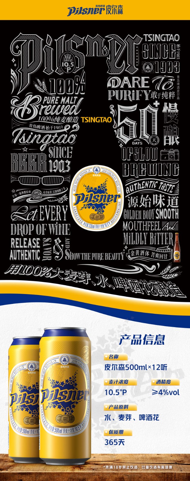商品名称:青岛啤酒皮尔森10.5度500ml*12听大罐整箱装(20版)ZZYC