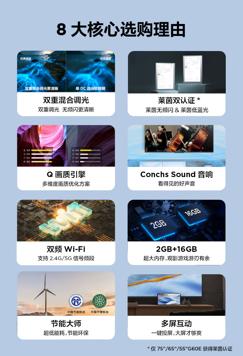 商品名称:J-TCL 55吋4K超高清AI语音电视 全生态HDR智能电视 快速开机多屏互动微信互联55寸彩电电视机 一级能效 55G60L