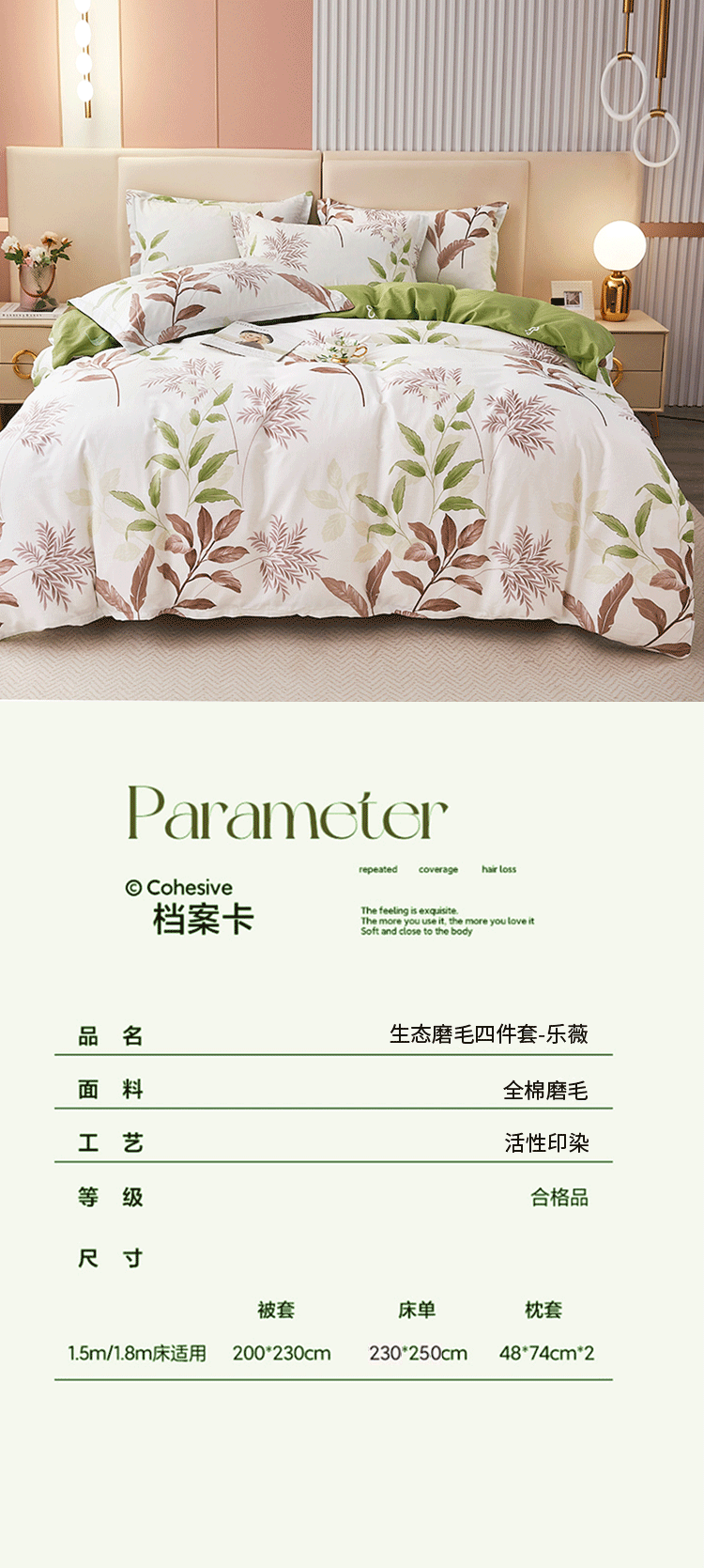 商品名称:唐纳全棉四件套-晨暮间TN-KT23043被套:200*230CM