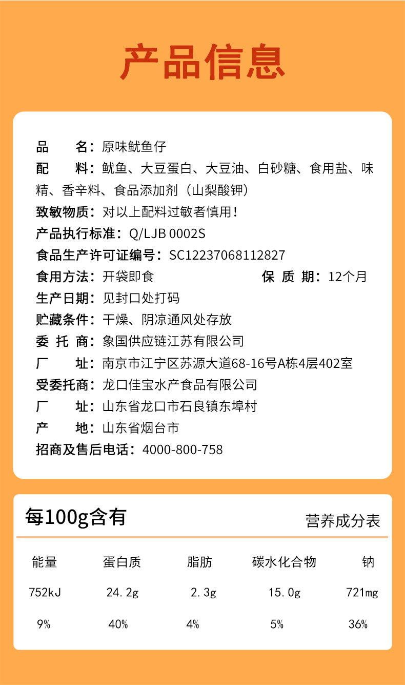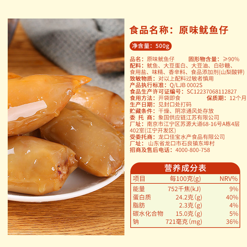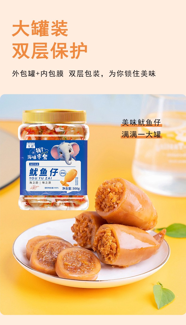 商品名称:万达原味鱿鱼仔500g*1罐