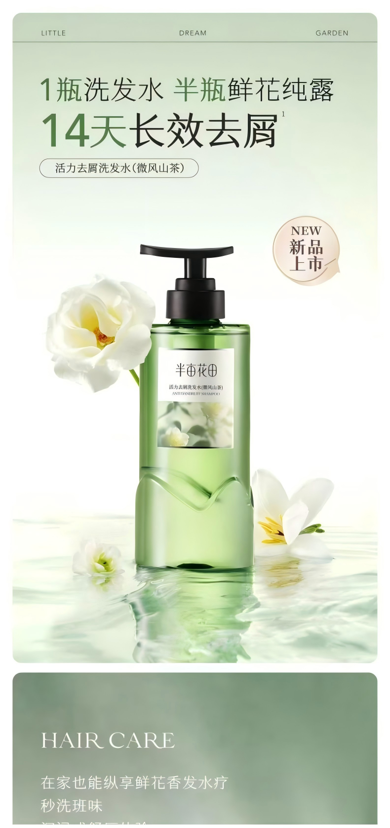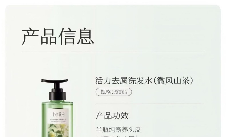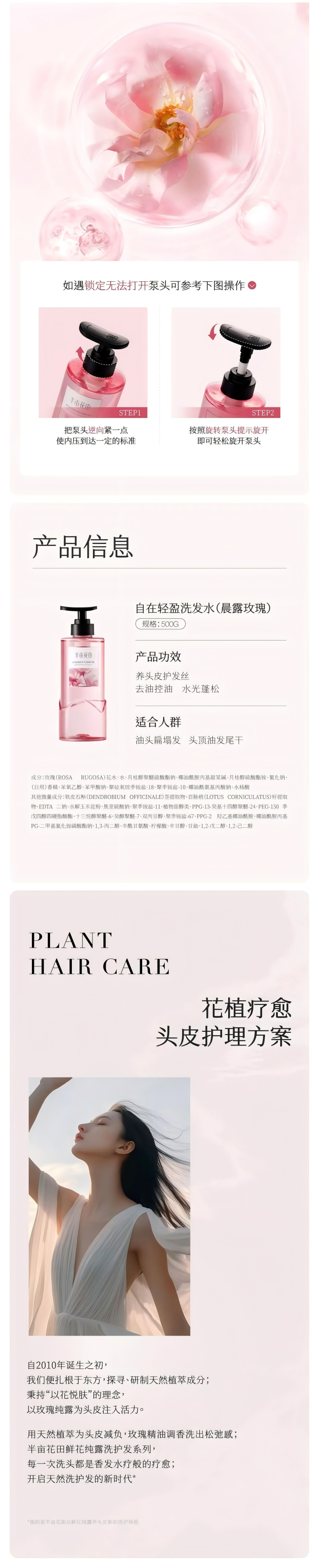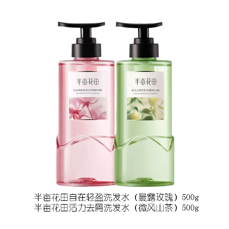 半亩花田 自在轻盈洗发水(晨露玫瑰)500g+活力去屑洗发水(微风山茶)500g 6923427919738 偏远另加运费