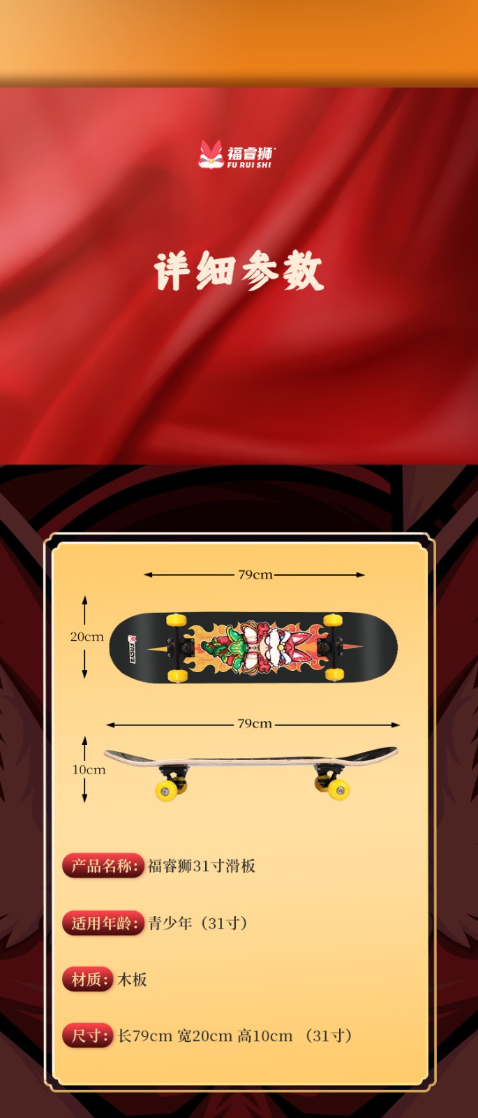商品名称:福睿狮滑板火焰黑FS-31 6976188990089新疆西藏不发货
