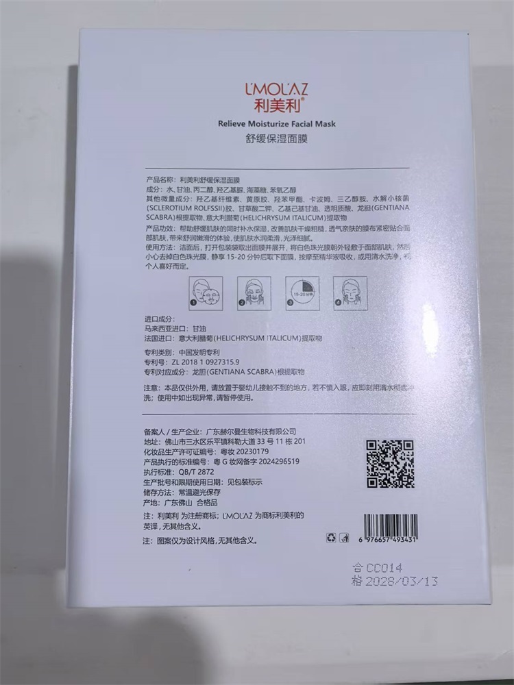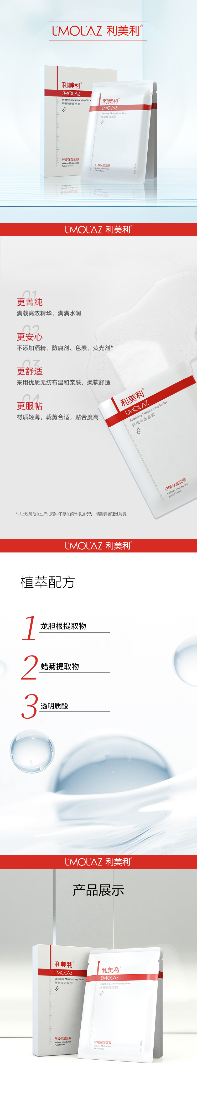 商品名称:J-LMOLAZ利美利 舒缓保湿面膜【舒缓肌肤补水保湿】5片/盒 5片/盒