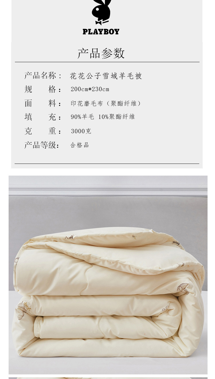 商品名称:花花公子雪域羊毛被HDBYM2502 200*230cm 6974085462807