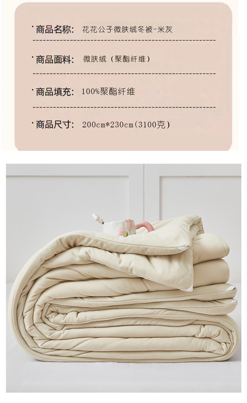 商品名称:花花公子微肤绒冬被-米灰HDBR2507 200*230cm 6974085462852