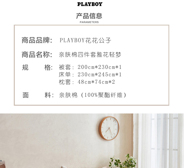 商品名称:花花公子亲肤棉四件套雅花轻梦H4QF11 6974085462913