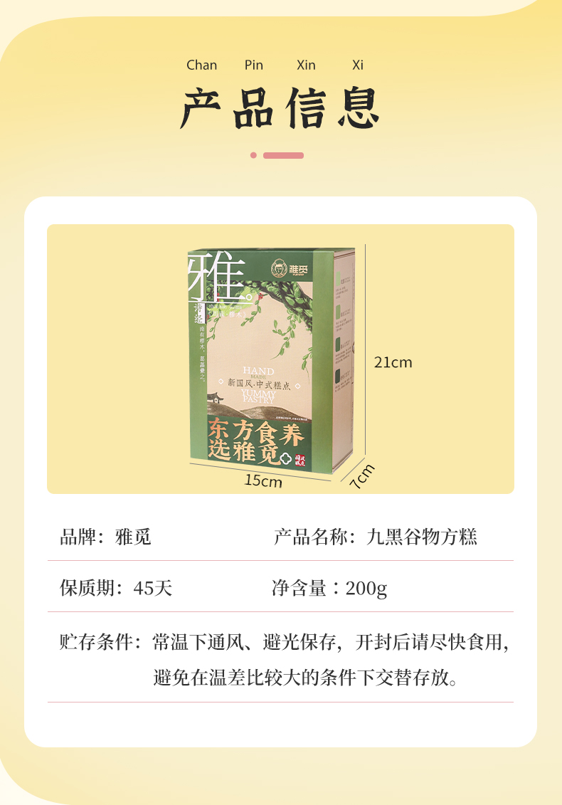 商品名称:雅觅九黑谷物方糕200g规格40g*5枚左右6977575995045