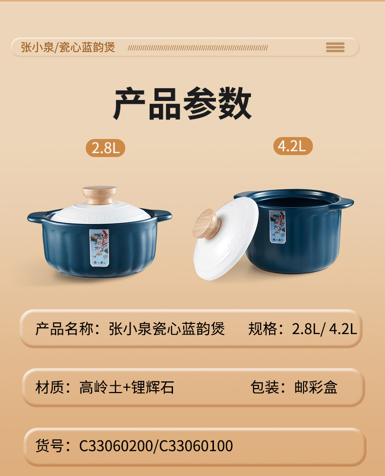商品名称:张小泉 瓷心蓝韵煲 2.8L C33060200 6957389147823 偏远另加运费
